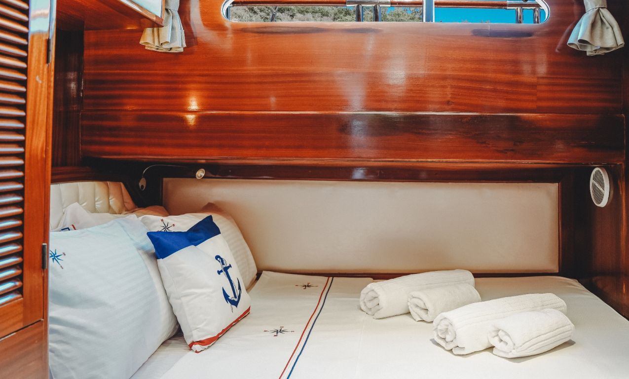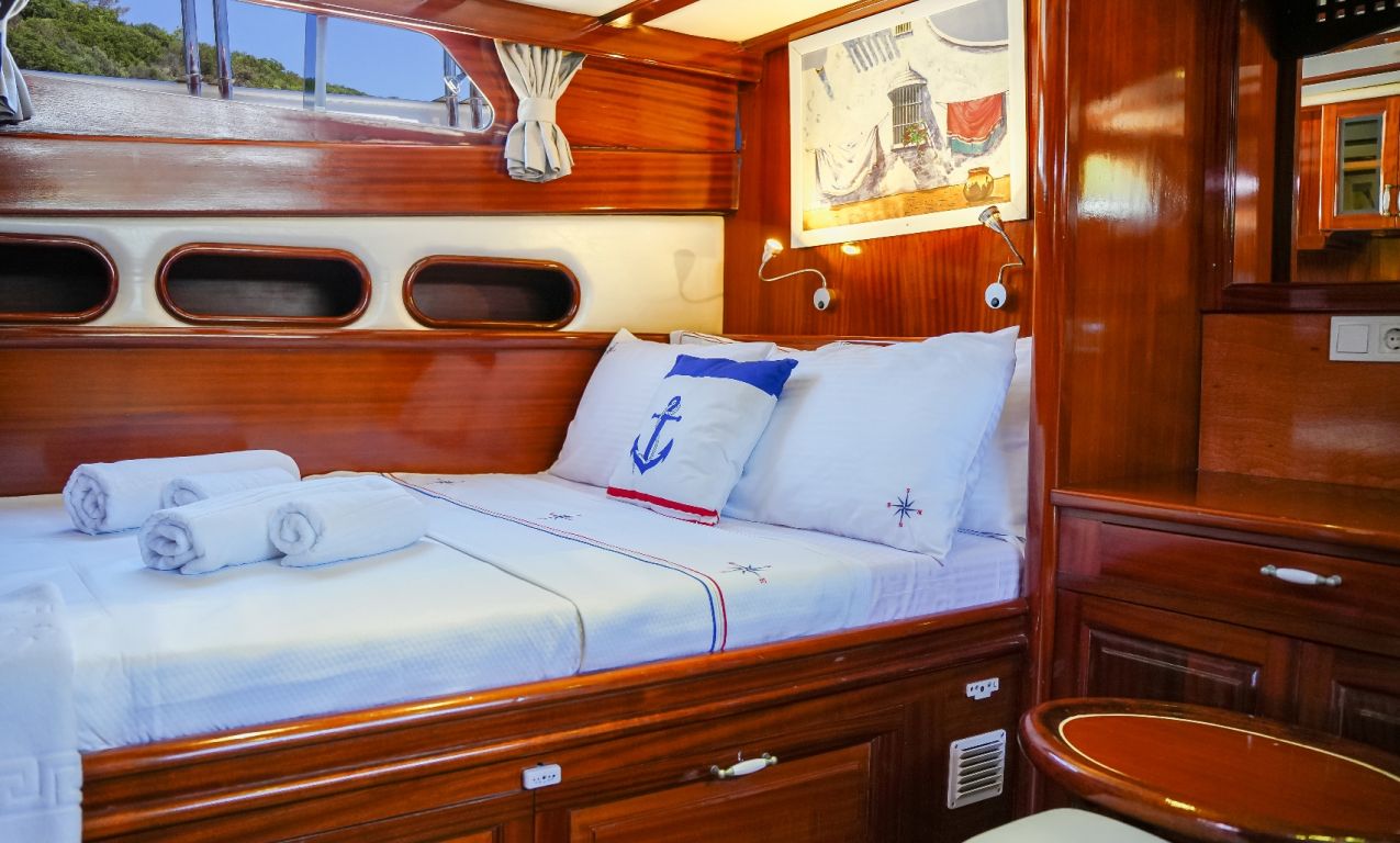 6 Kişilik Kapasiteli; 1 Master, 2 Çift Kişilik Kabin, Duş Ve Tuvaletli Kamara. Personel için ayrı kabinler mevcuttur.