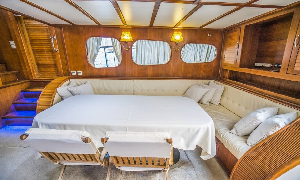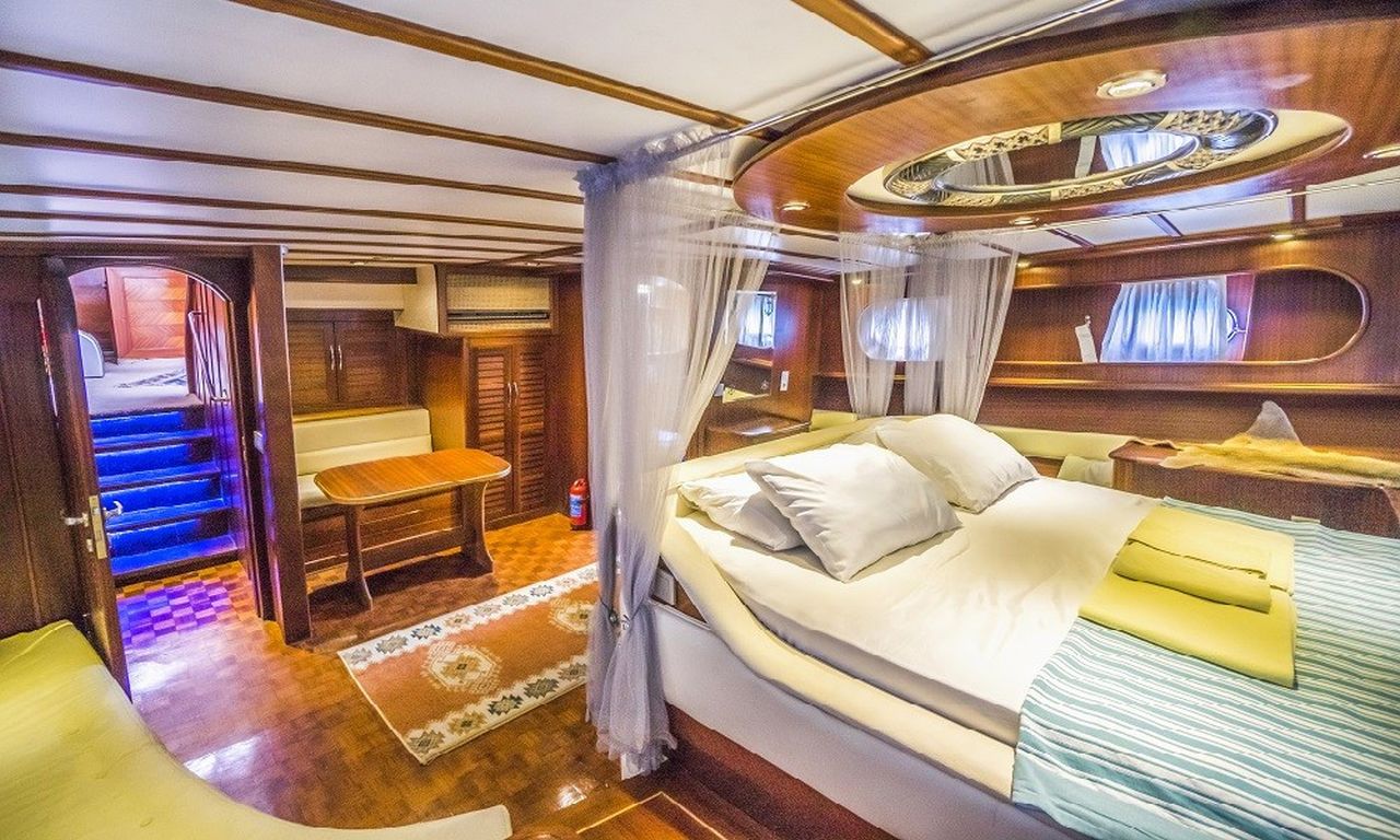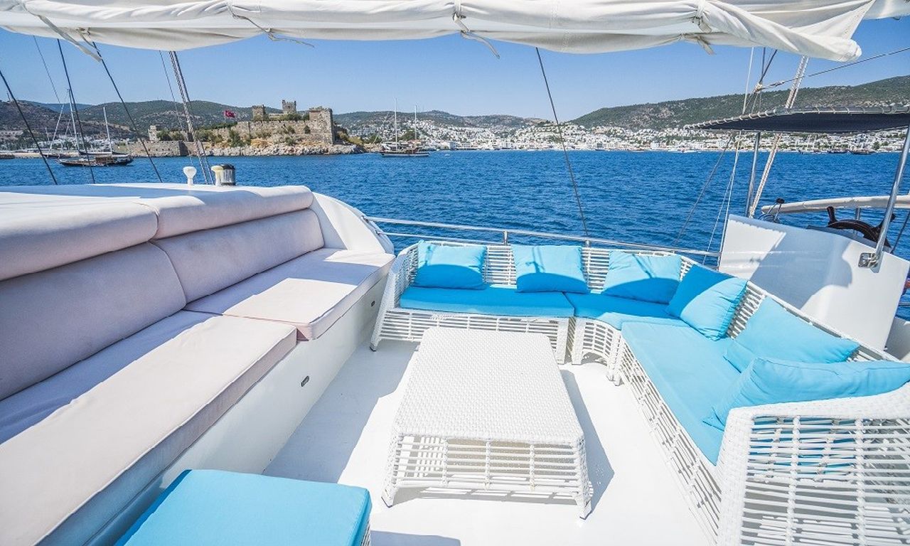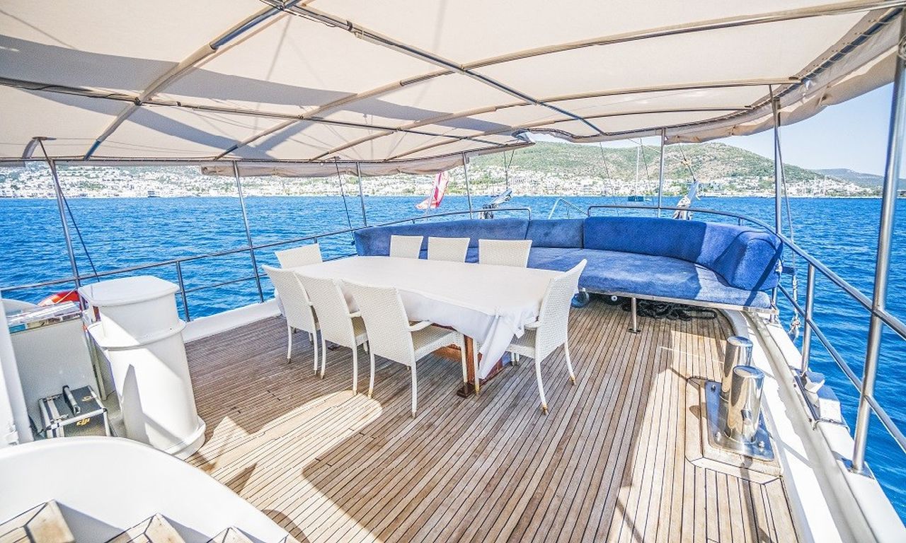 | Esma Sultan 2 Bodrum, Gökova, Marmaris, Göcek, Fethiye turlarımızda en çok tercih edilen küçük gruplar ve aileler için ideal 8 kişi kapasiteli 4 kabinli teknelerimizden biridir. Guletimiz özel tekne kiralamada misafirlerine Bodrum Göcek Fethiye Marmaris çıkışlı unutulmaz bir mavi tur tatili yaşatmak için özel olarak tasarlanmıştır. 24.00 mt Uzunluğundaki guletimiz 2010 yılında imal edilmiştir. Bu 4 kabinli guletimizde evinizin bütün konforunu deniz üzerinde yaşayabilirsiniz. Esma Sultan 2 guleti toplam 4 çift kişilik yataklı kabiniyle, toplamda 8 misafir için konaklama imkanı sunar. Guletimizin kabinlerinde konforlu duş ve wc imkanı vardır. Guletimizin iç ve dış mekanlarında, salonda, güvertede ve mutfağında son derece kaliteli materyaller kullanılarak zevkle dekore edilmiştir. Yatının mavi tur servisi konusunda deneyimli Kaptan ve aşçısı tekne tatiliniz boyunca konforunuz için sizin hizmetinizdedir. 3 kişilik ekibiniz servis, yemek, temizlik ve günlük faaliyetlerin organizasyonu için tatiliniz boyunca size eşlik edecektir. guletimiz ile yapmış olduğumuz kiralamalarda müşterilerimizden. Son yıllarda aldığımız Geri dönüş ve referanslar Esma Sultan 2 yatımızda yüzde yüz müşteri memnuniyeti garantisi vermektedir. |