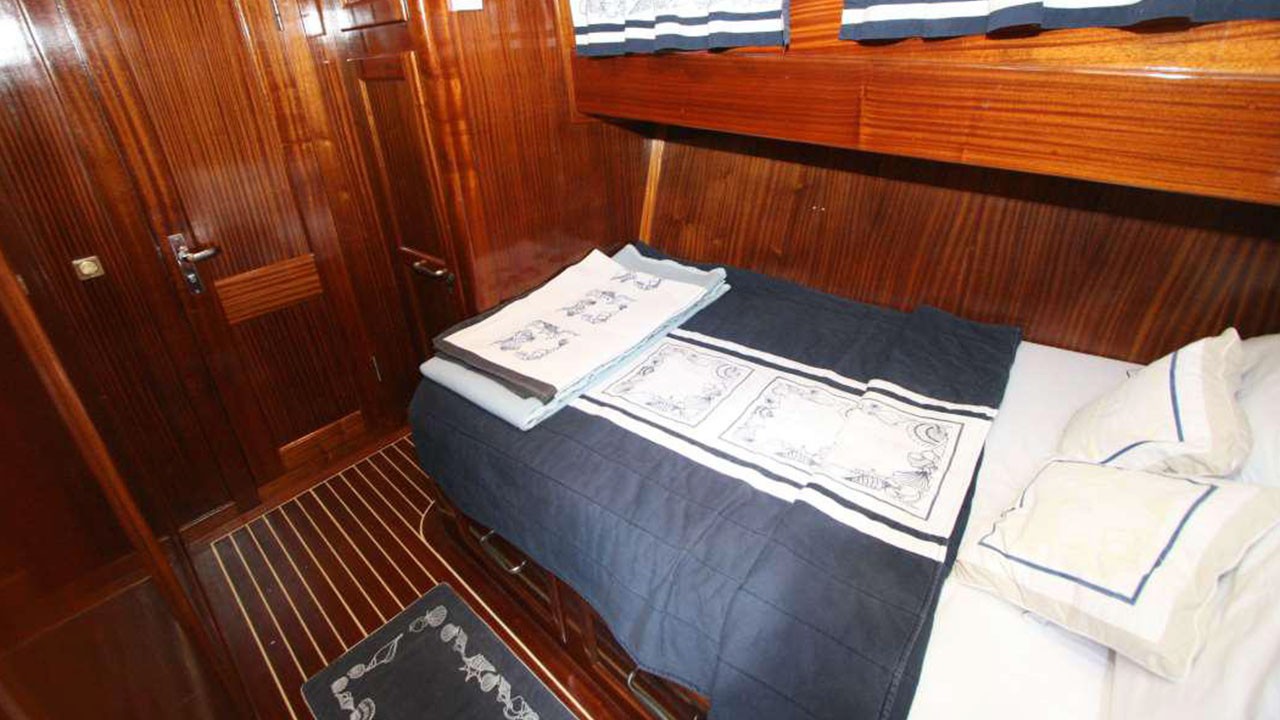 8 Kişiye Kadar Kapasite; 4 Çift Kişilik Kabin, tüm kabinlerde duş ve tuvalet, Ayrı mürettebat kabinleri.