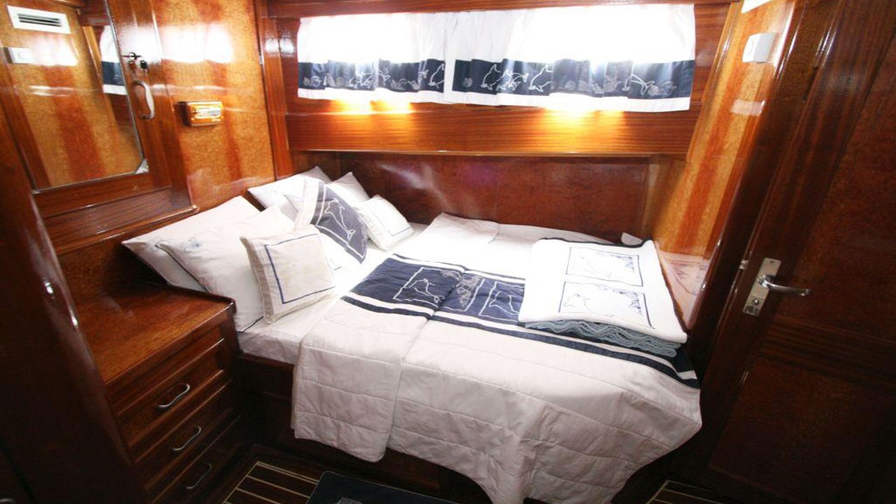 Miramare Bodrum, Gökova, Marmaris, Göcek, Fethiye turlarımızda en çok tercih edilen küçük gruplar ve aileler için ideal 8 kişi kapasiteli 4 kabinli teknelerimizden biridir. Guletimiz Miramare, özel tekne kiralamada misafirlerine Bodrum Göcek Fethiye Marmaris çıkışlı unutulmaz bir mavi tur tatili yaşatmak için özel olarak tasarlanmıştır. 20.00 mt Uzunluğundaki guletimiz 2007 yılında imal edilmiş, 2022 yılında yenilenmiştir. Bu 4 kabinli guletimizde evinizin bütün konforunu deniz üzerinde yaşayabilirsiniz. Miramare guleti toplam 4 çift kişilik yataklı kabiniyle, toplamda 8 misafir için konaklama imkanı sunar. Guletimizin klimalı kabinlerinde konforlu duş ve wc imkanı vardır. guletimizin iç ve dış mekanlarında, salonda, güvertede ve mutfağında son derece kaliteli materyaller kullanılarak zevkle dekore edilmiştir. Miramare Yatının mavi tur servisi konusunda deneyimli Kaptan ve aşçısı tekne tatiliniz boyunca konforunuz için sizin hizmetinizdedir. 3 kişilik ekibiniz servis, yemek, temizlik ve günlük faaliyetlerin organizasyonu için tatiliniz boyunca size eşlik edecektir. guletimiz ile yapmış olduğumuz kiralamalarda müşterilerimizden. Son yıllarda aldığımız Geri dönüş ve referanslar Miramare yatımızda yüzde yüz müşteri memnuniyeti garantisi vermektedir.