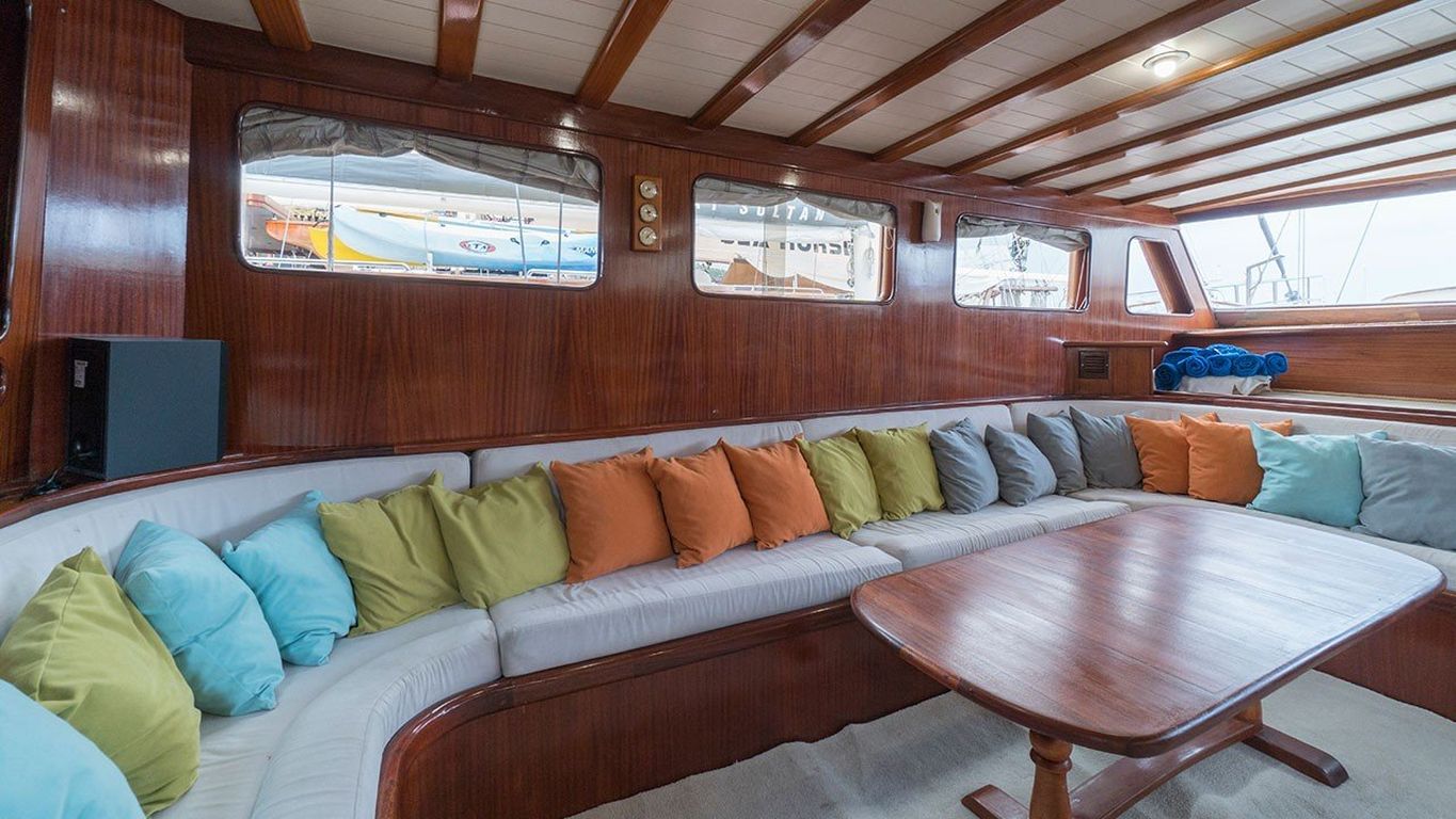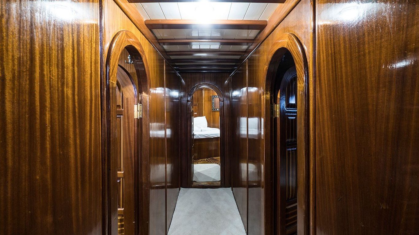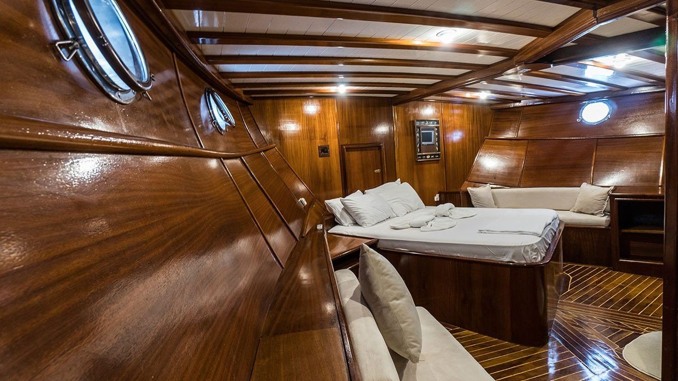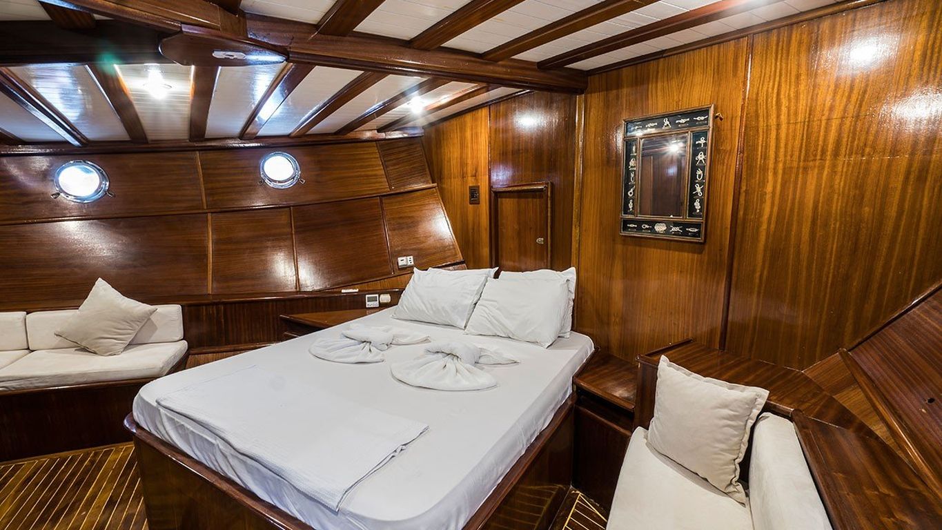 8 Kişilik Misafir Kapasitesi; 2 Master, 2 Double Kabin, tüm kabinlerde duş kabini ve tuvalet, ayrı mürettebat kabinleri. |