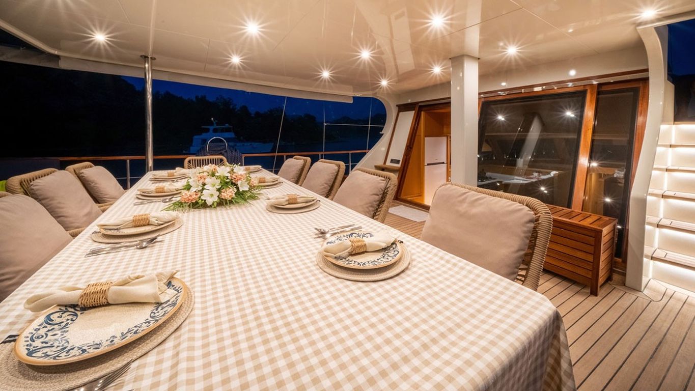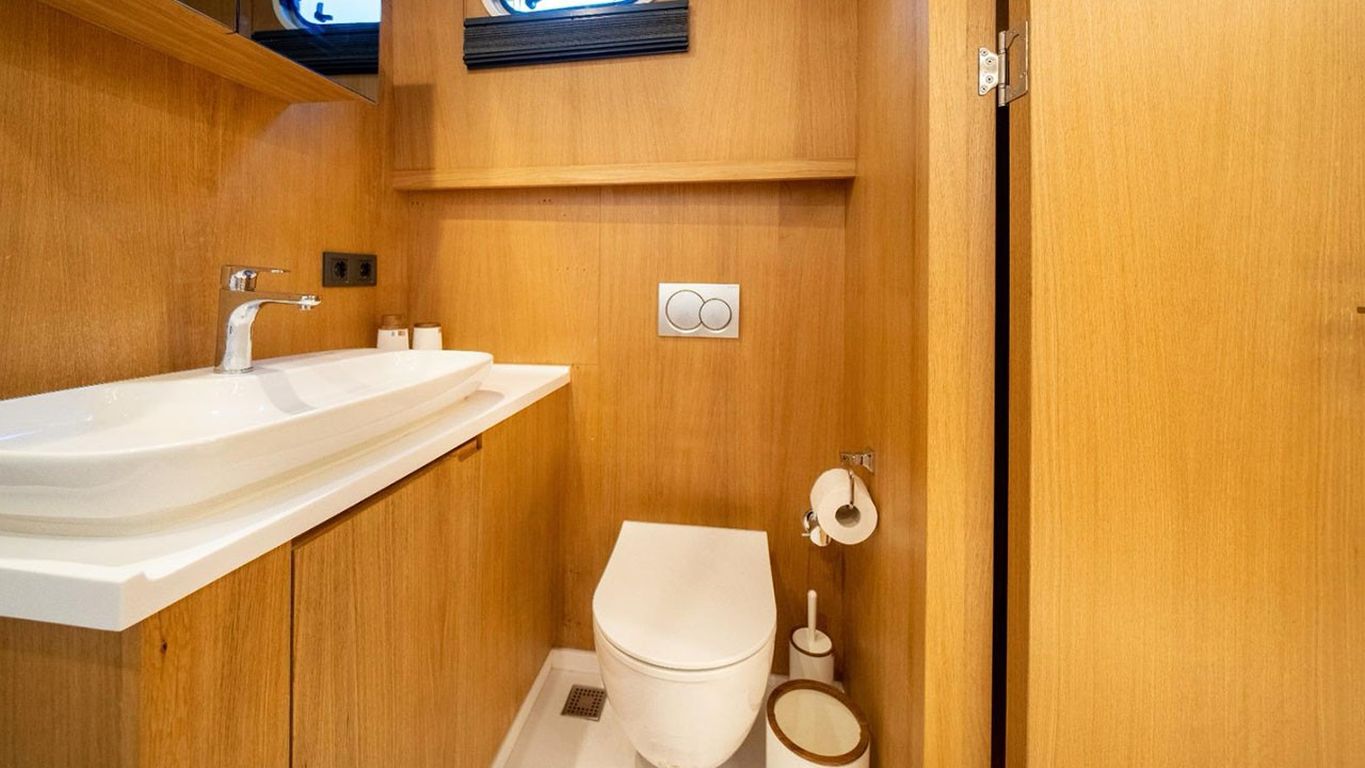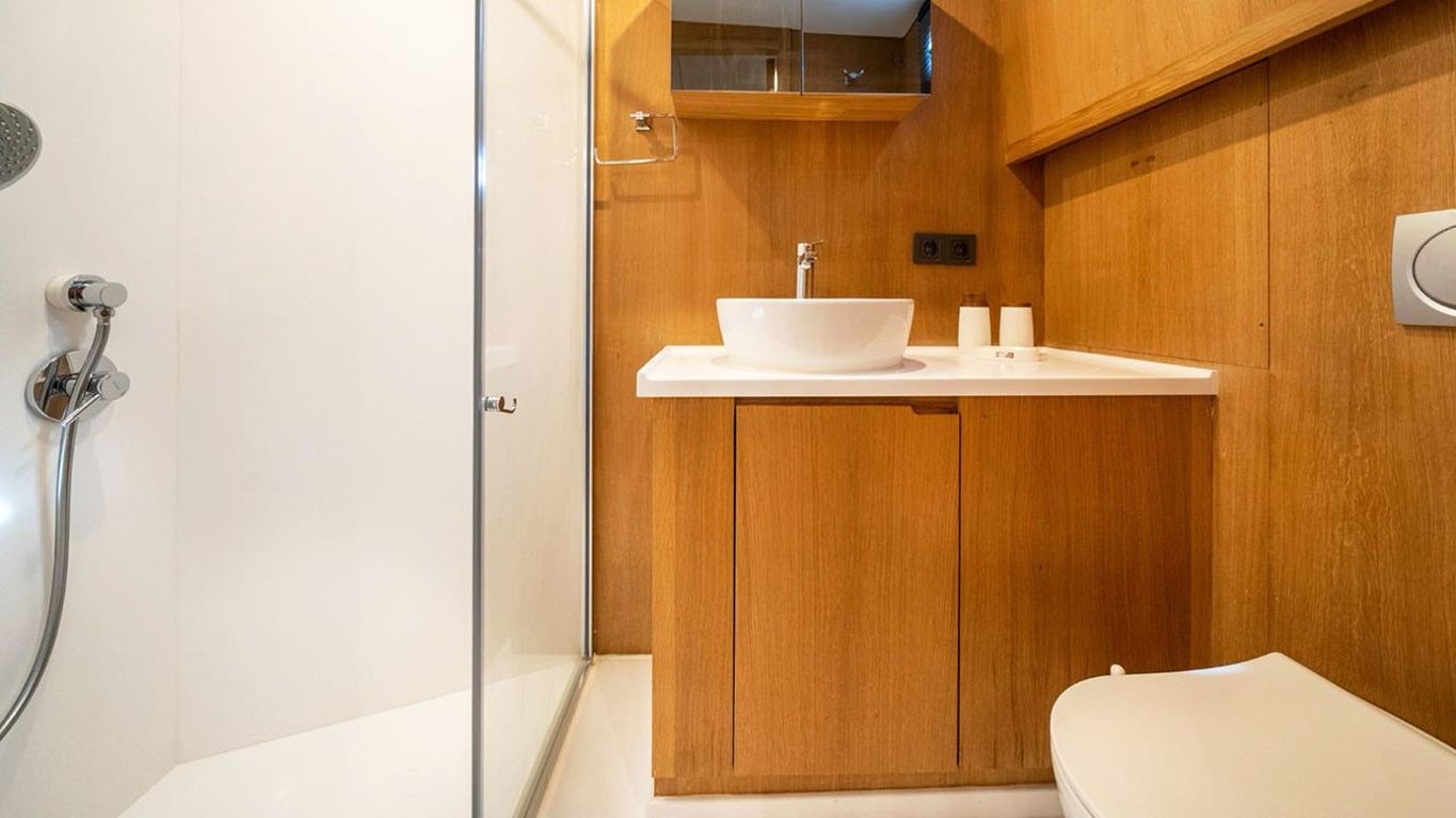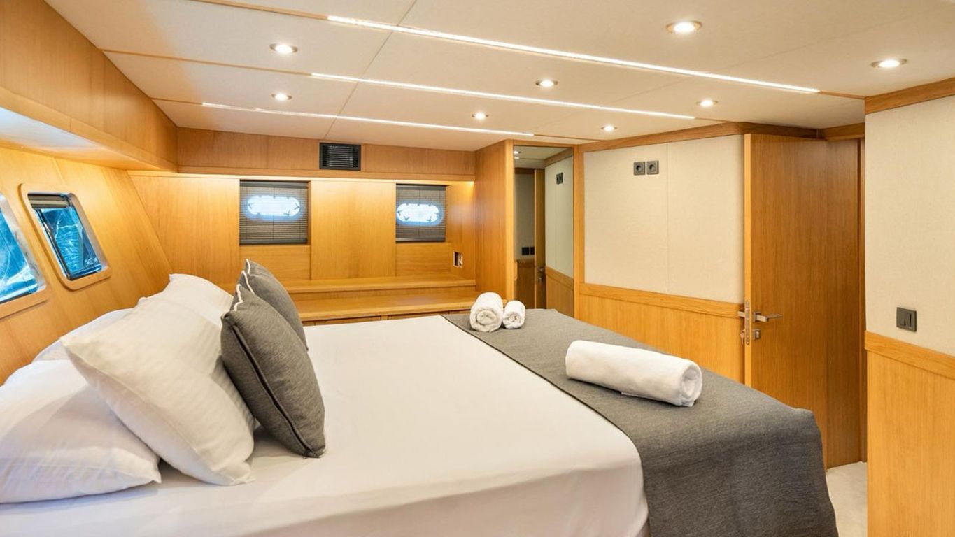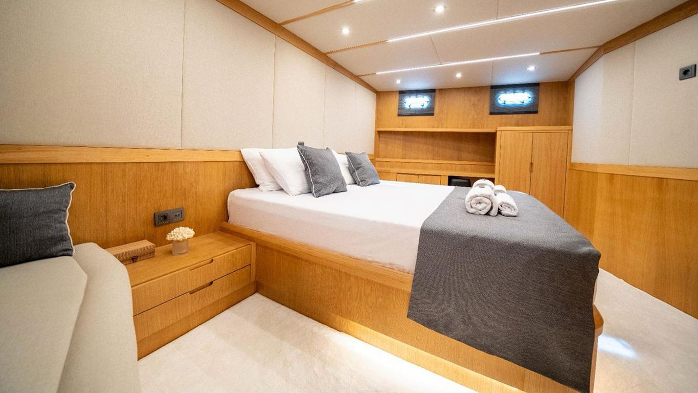10 Kişiye Kadar Kapasite; 2 Master, 1 Double, 2 Twin Kabin, tüm kabinlerde duş kabini ve tuvalet, ayrı mürettebat kabinleri. |