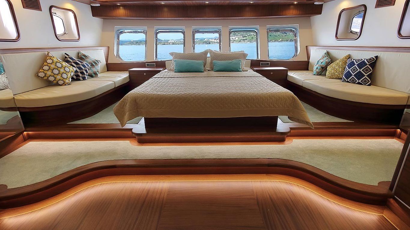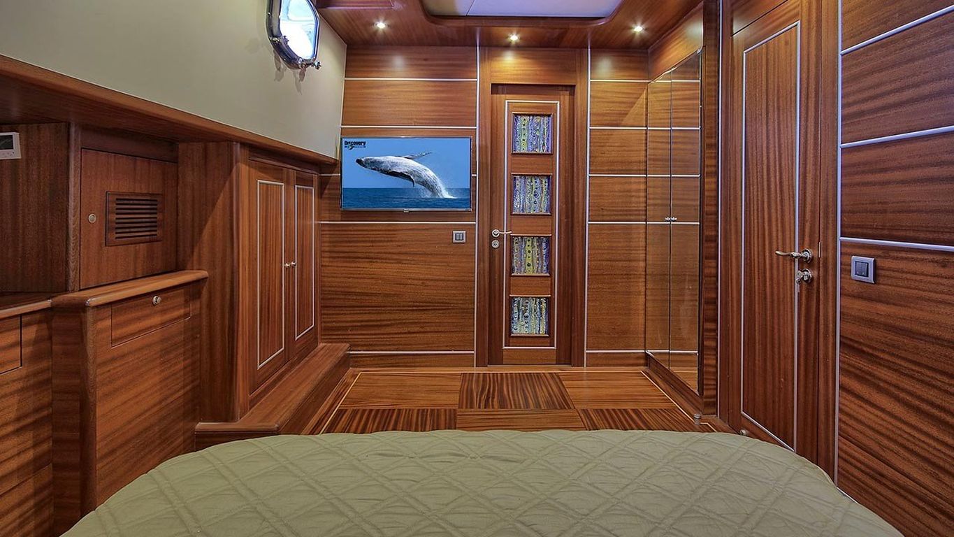 10 Kişiye Kadar Kapasite; 1 Master, 2 Double, 2 Twin Kabin, tüm kabinlerde duş kabini ve tuvalet, ayrı mürettebat kabinleri.