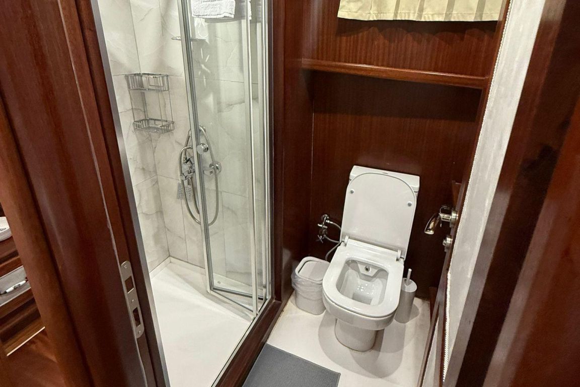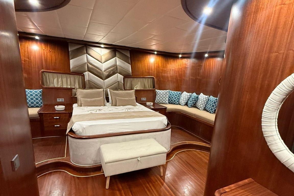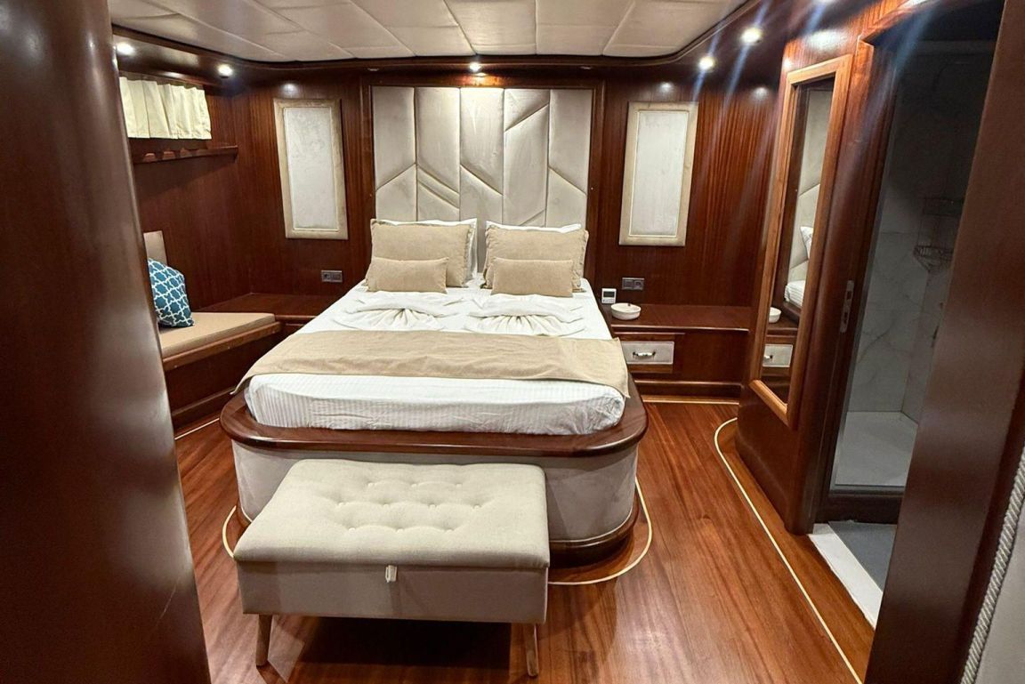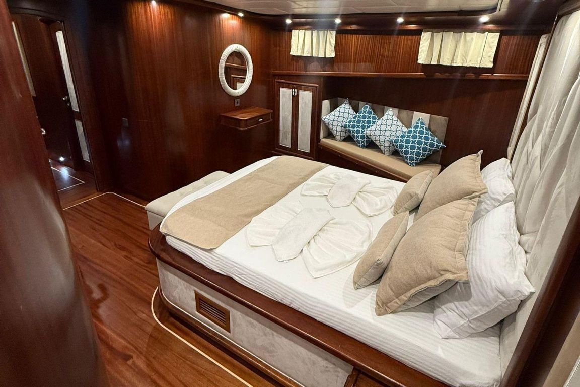 12 Kişiye Kadar Kapasite; 2 Master, 1 Double, 2 Triple Kabin, tüm kabinlerde duş kabini ve tuvalet, ayrı mürettebat kabinleri. |
