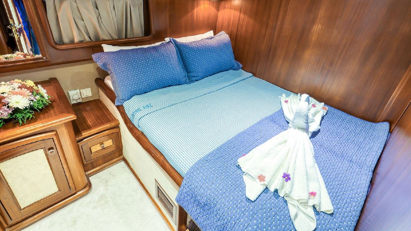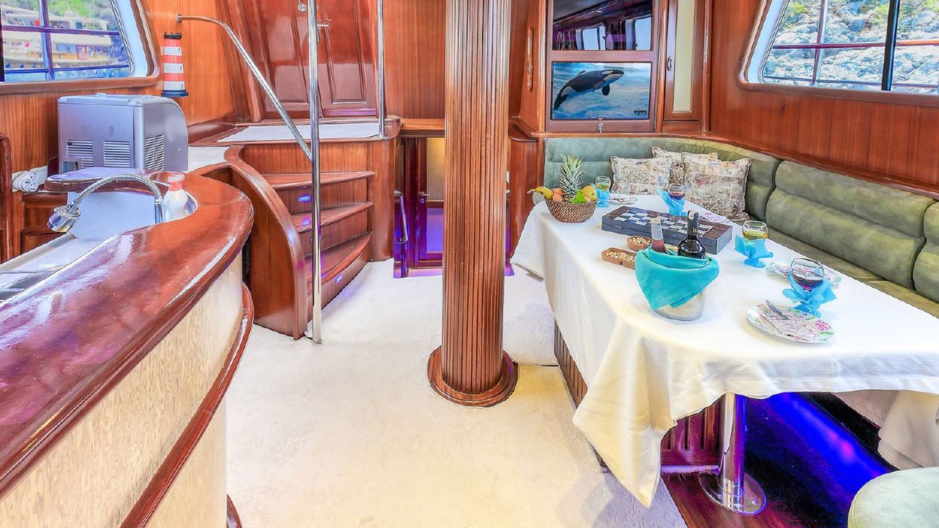 | Mehmet Ayaz Bodrum, Gökova, Marmaris, Göcek, Fethiye turlarımızda en çok tercih edilen küçük gruplar ve aileler için ideal 10 kişi kapasiteli 5 kabinli teknelerimizden biridir. Guletimiz Mehmet Ayaz, özel tekne kiralamada misafirlerine Bodrum Göcek Fethiye Marmaris çıkışlı unutulmaz bir mavi tur tatili yaşatmak için özel olarak tasarlanmıştır. 24.00 mt Uzunluğundaki guletimiz 2008 yılında imal edilmiş, 2019 yılında yenilenmiştir. Bu 5 kabinli guletimizde evinizin bütün konforunu deniz üzerinde yaşayabilirsiniz. Mehmet Ayaz guleti toplam 5 çift kişilik yataklı kabiniyle, toplamda 10 misafir için konaklama imkanı sunar. Guletimizin klimalı kabinlerinde konforlu duş ve wc imkanı vardır. guletimizin iç ve dış mekanlarında, salonda, güvertede ve mutfağında son derece kaliteli materyaller kullanılarak zevkle dekore edilmiştir. Mehmet Ayaz Yatının mavi tur servisi konusunda deneyimli Kaptan ve aşçısı tekne tatiliniz boyunca konforunuz için sizin hizmetinizdedir. 3 kişilik ekibiniz servis, yemek, temizlik ve günlük faaliyetlerin organizasyonu için tatiliniz boyunca size eşlik edecektir. guletimiz ile yapmış olduğumuz kiralamalarda müşterilerimizden. Son yıllarda aldığımız Geri dönüş ve referanslar Mehmet Ayaz yatımızda yüzde yüz müşteri memnuniyeti garantisi vermektedir. |