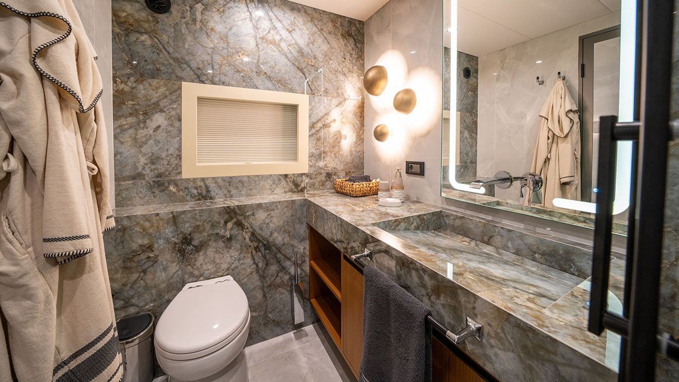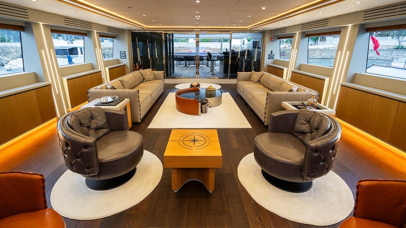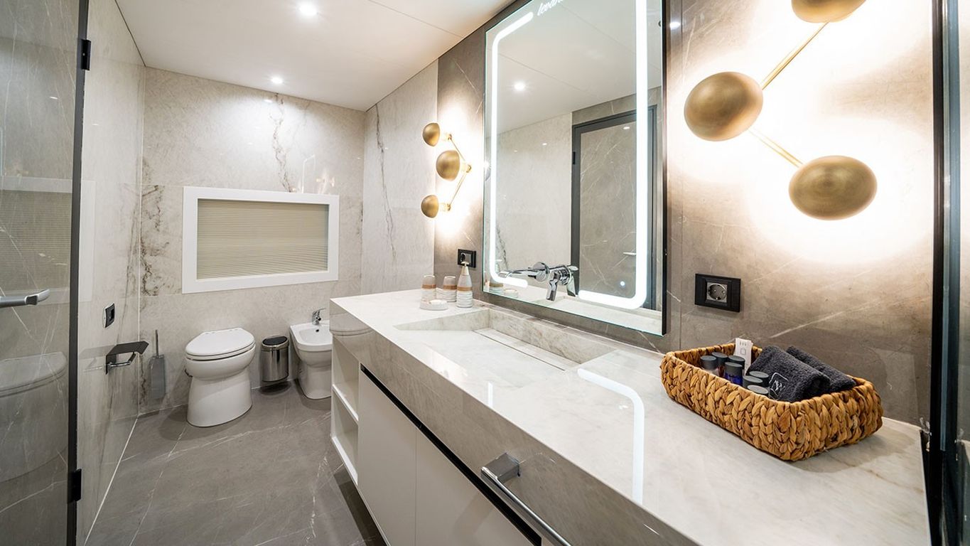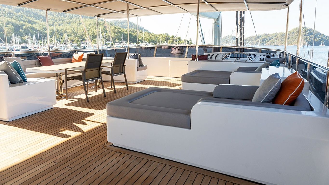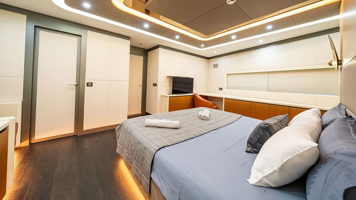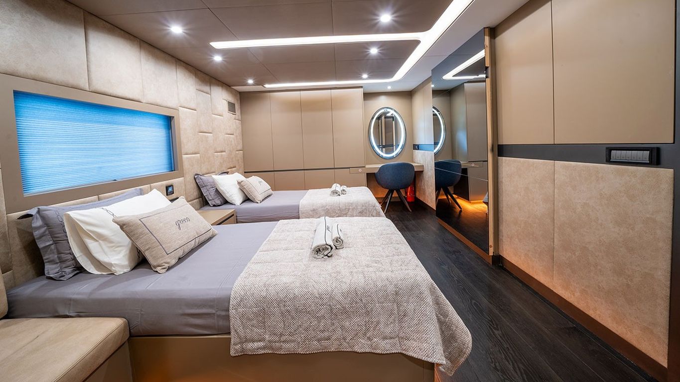 10 Misafir Kapasitesi; 1 Master, 3 Double, 1 Twin Kabin, tüm kabinlerde duş kabini ve tuvalet, ayrı mürettebat kabinleri.. |