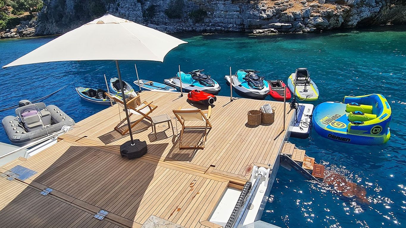 250 HP - 115 HP Merkür Dinghy Dıştan takma motor, Jetski, Stand Up Paddle Board, Wakeboard, Kano, Big Mable, Su Kayağı, Ringo, Şnorkelli Yüzme ve Balık Tutma Ekipmanları, Donanımlı Mutfak, Kapalı Yemek Alanı, Güvenlik Ekipmanları, Navigasyon Ekipmanları, Yelken Ekipmanları, Güneşlenme Yatakları, Yelkenler, Yemek Alanı Bulunan Güverte, TV/DVD Oynatıcı, GPS, VHF radyo, Wi-fi İnternet |