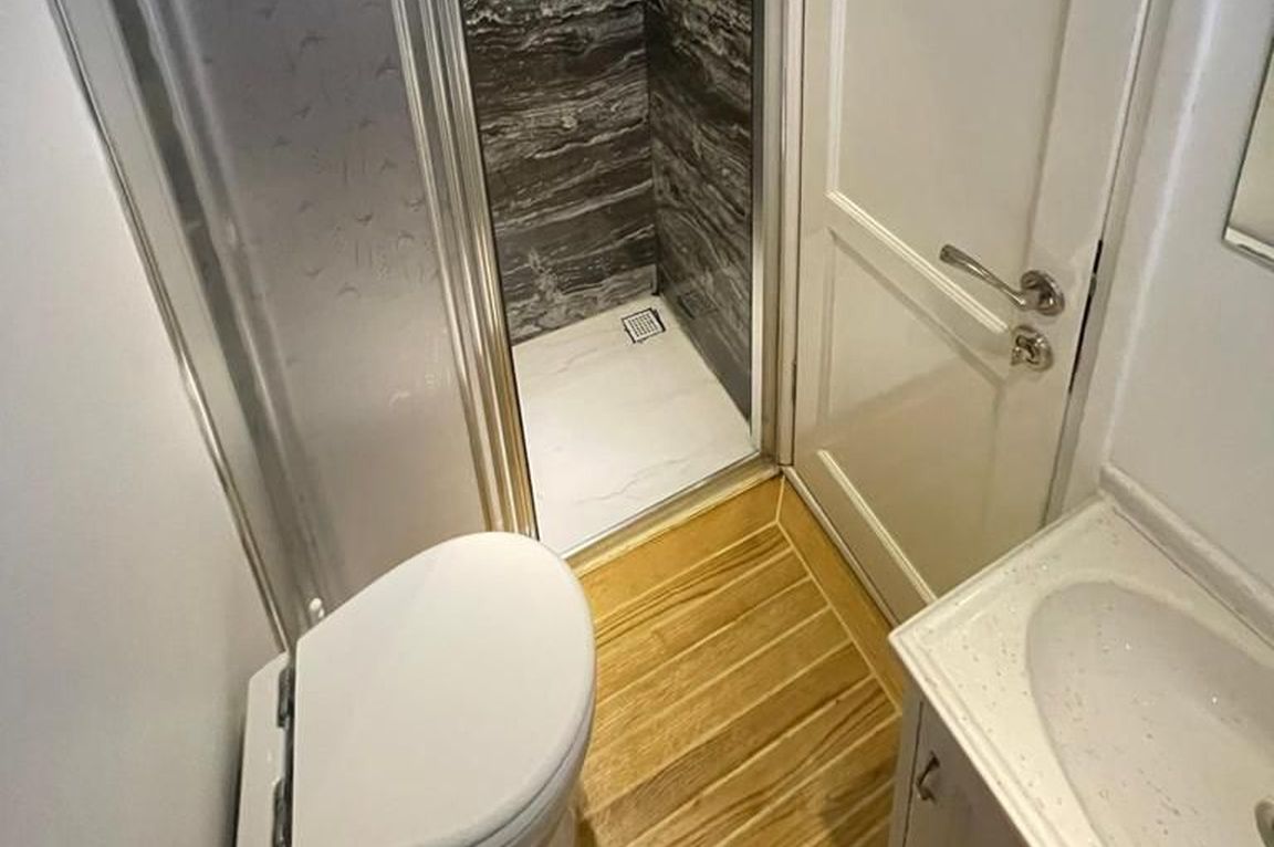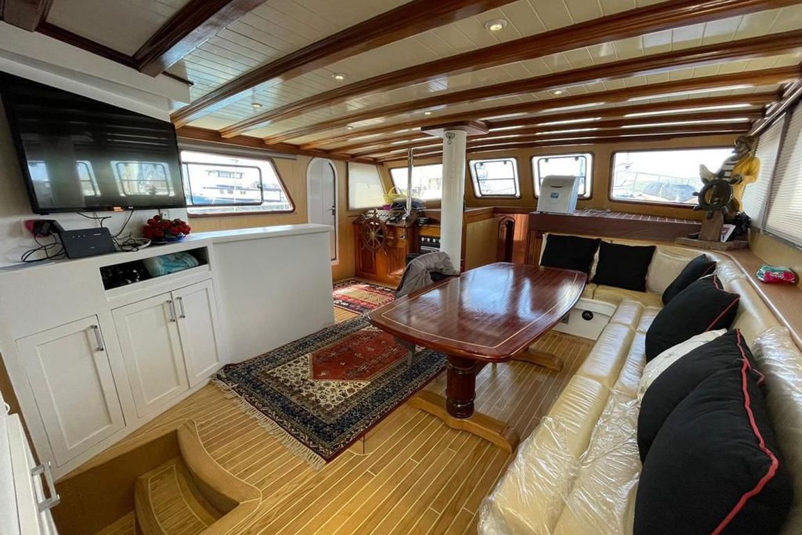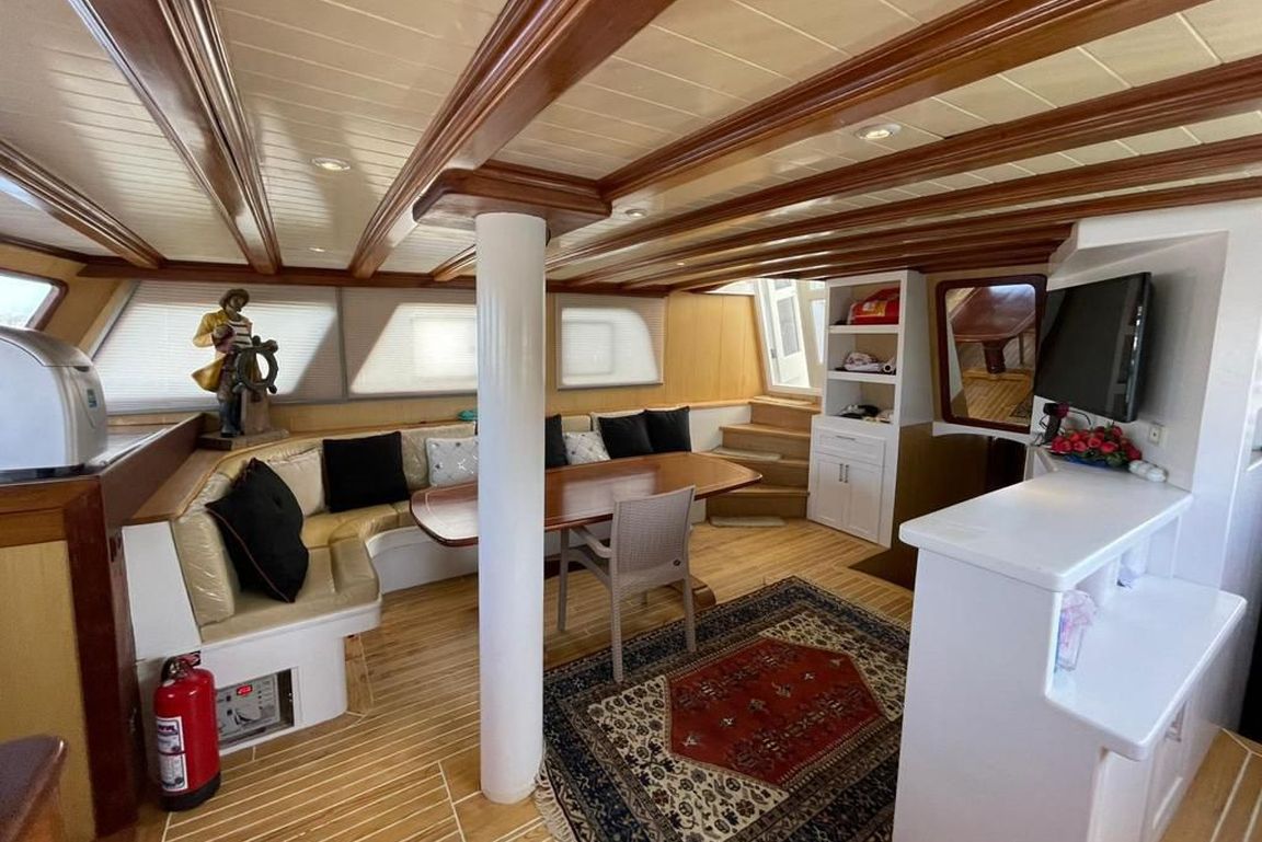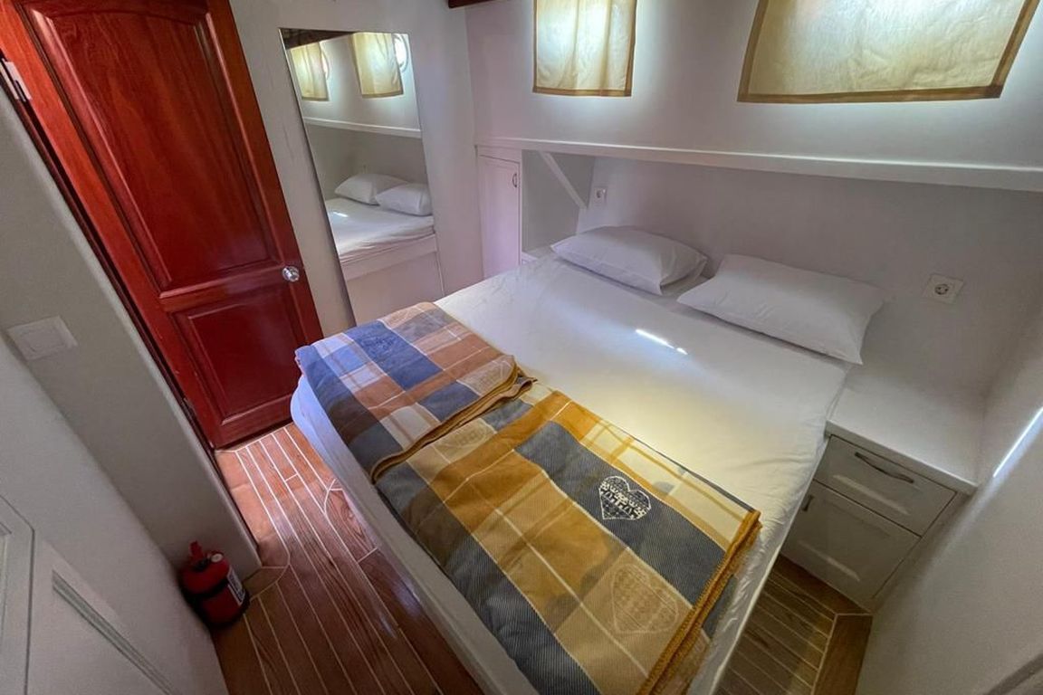 12 kişiye kadar konaklama; 3 çift kişilik, 2 iki yataklı kabin, klima, duş, havlu askısı, sıcak su, tuvalet, saç kurutma makinesi, nevresimler, yastık ve kılıflar, çekmece, gardırop, ısıtma, ayrı mürettebat kabinleri. |
