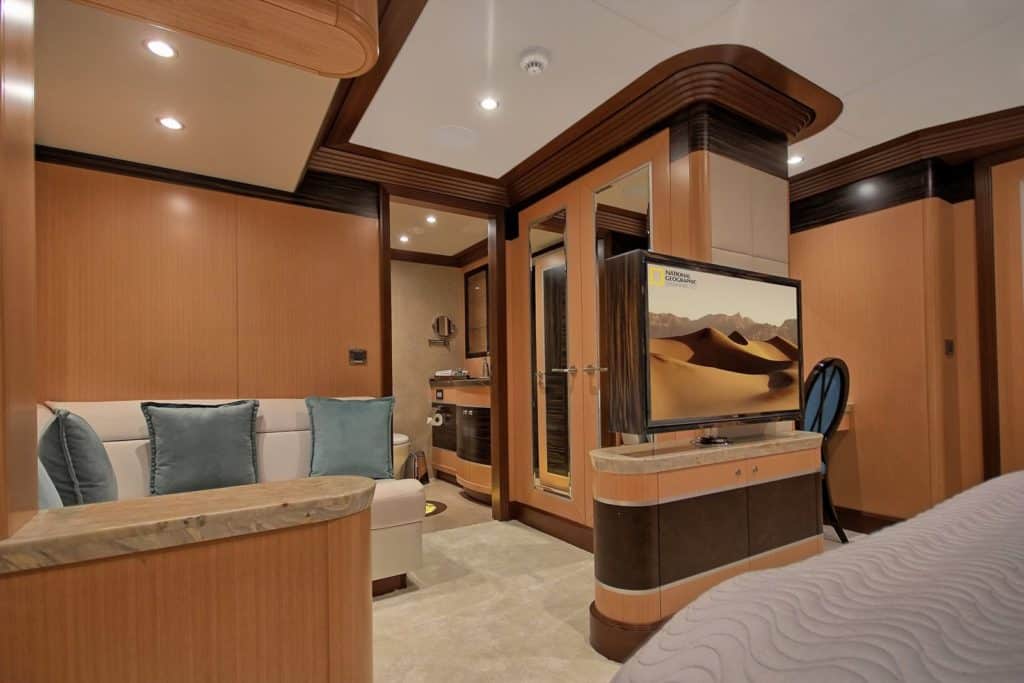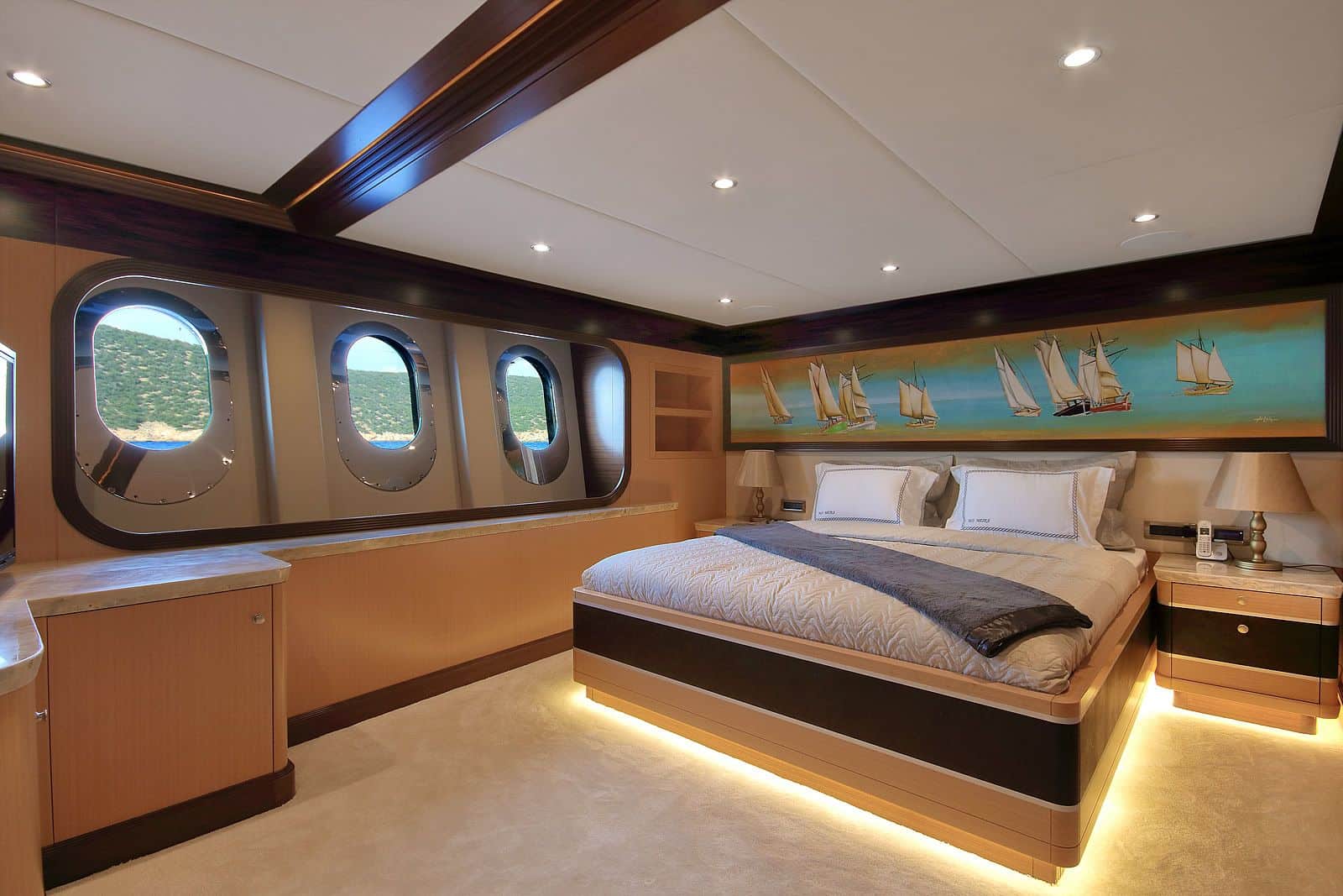 12 Kişilik kapasiteli; 1 Master, 3 Çift Kişilik, 2 Twin kabin, duş ve tuvaletli kamara. Personel için ayrı kabinler mevcuttur. |