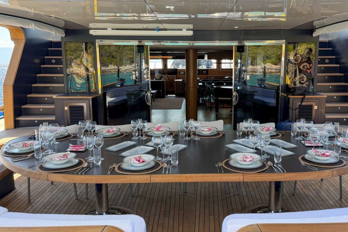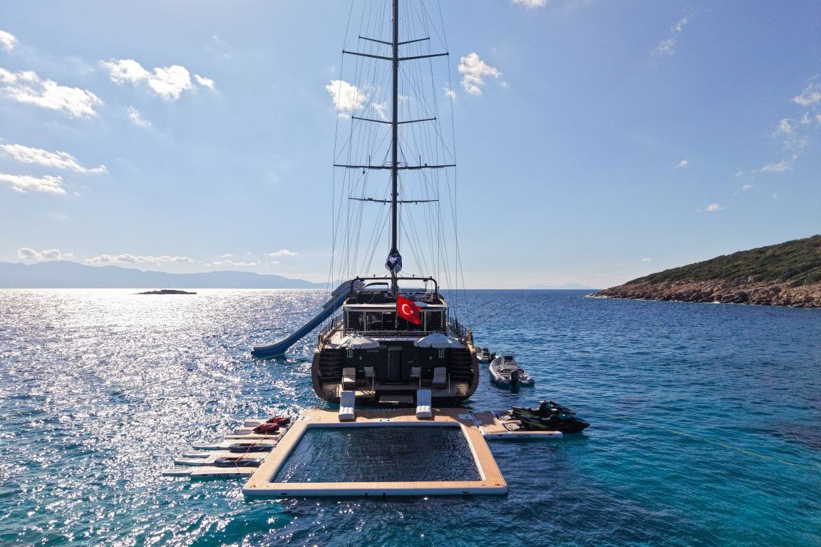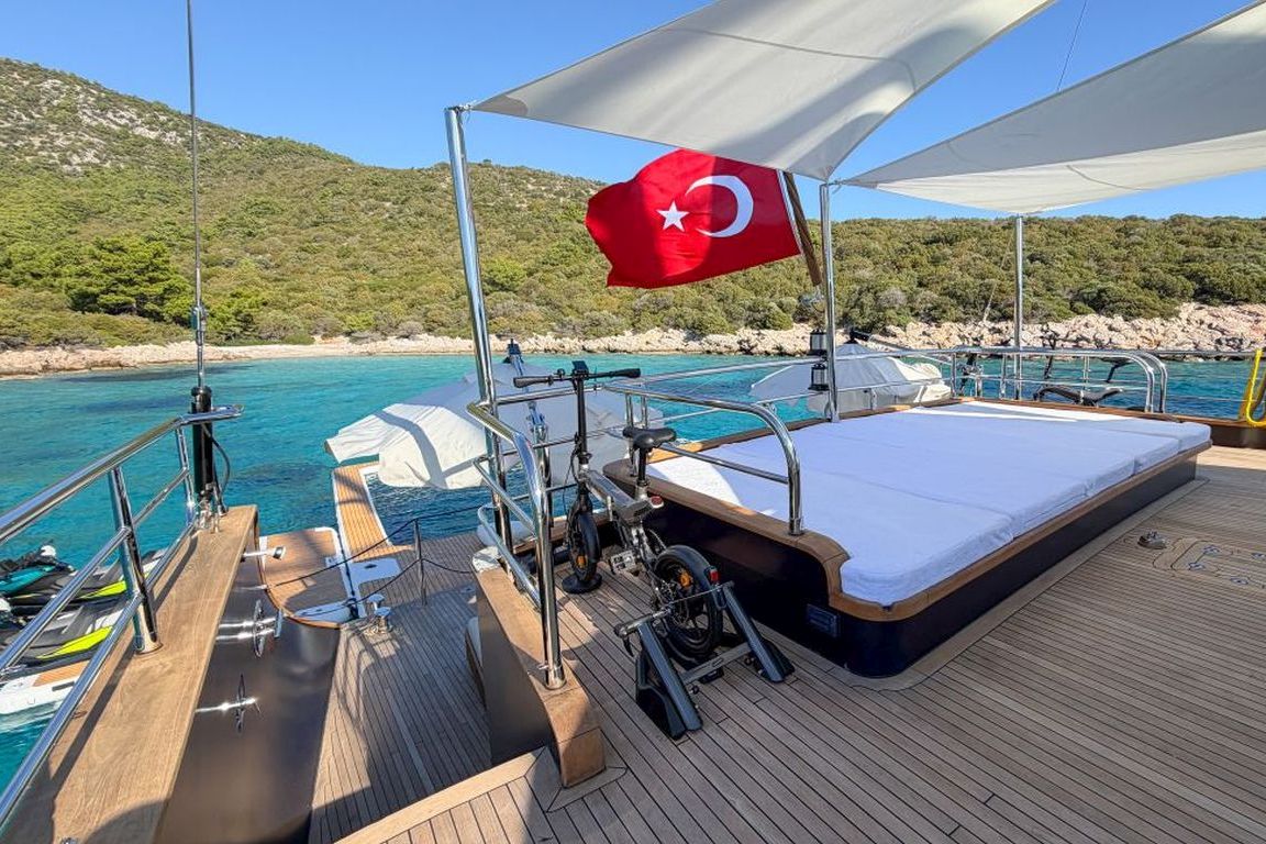 | 5,80 metre uzunluğunda 130 HP dıştan takmalı motorlu yardımcı bot, 4,20 metre uzunluğunda 60 HP dıştan takmalı motorlu servis botu, 2 adet jet ski, 2 adet seabob, 2 adet folyo, 2 adet kürek tahtası, 2 adet kano, şnorkel ve dalış ekipmanları, Kıç için şişme yüzer havuz, şişme su kaydırağı, akıllı TV, Wi-Fi, Bluetooth müzik sistemi, su yapıcı, tam donanımlı mutfak. |