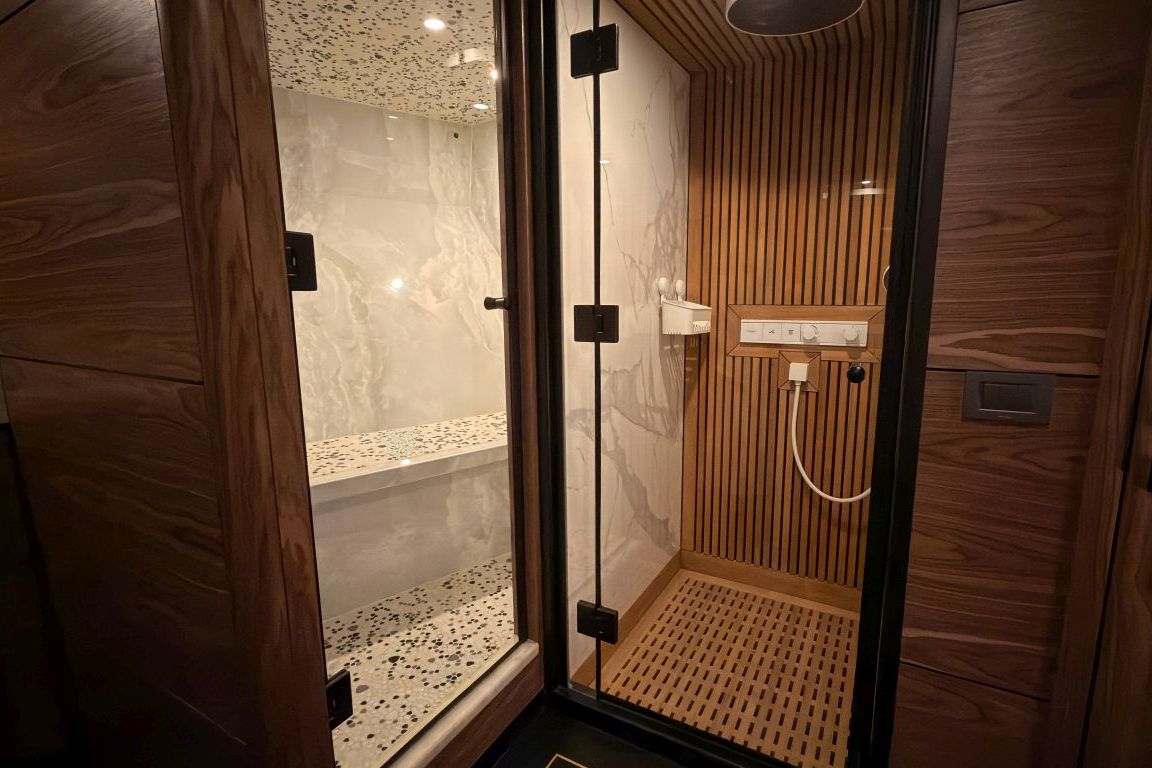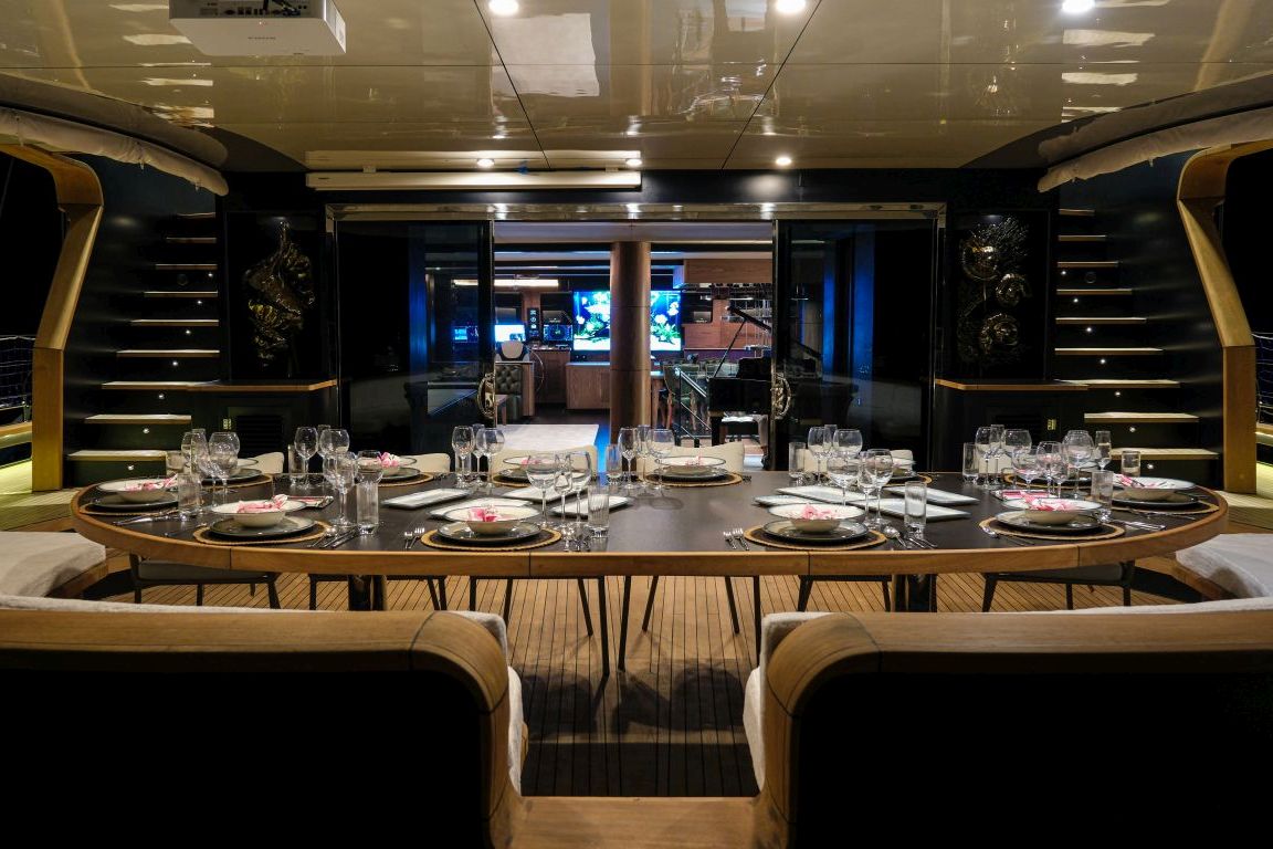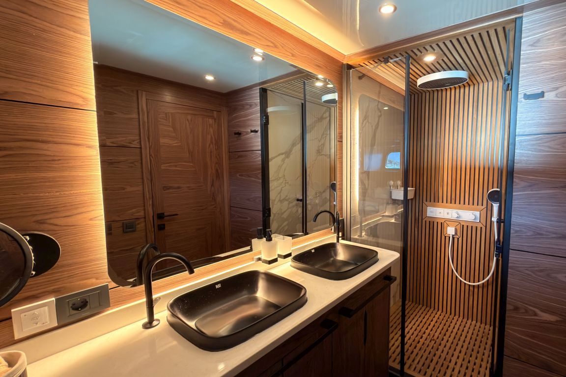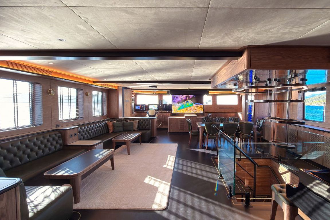 | 5,80 metre uzunluğunda 130 HP dıştan takmalı motorlu yardımcı bot, 4,20 metre uzunluğunda 60 HP dıştan takmalı motorlu servis botu, 2 adet jet ski, 2 adet seabob, 2 adet folyo, 2 adet kürek tahtası, 2 adet kano, şnorkel ve dalış ekipmanları, Kıç için şişme yüzer havuz, şişme su kaydırağı, akıllı TV, Wi-Fi, Bluetooth müzik sistemi, su yapıcı, tam donanımlı mutfak. |