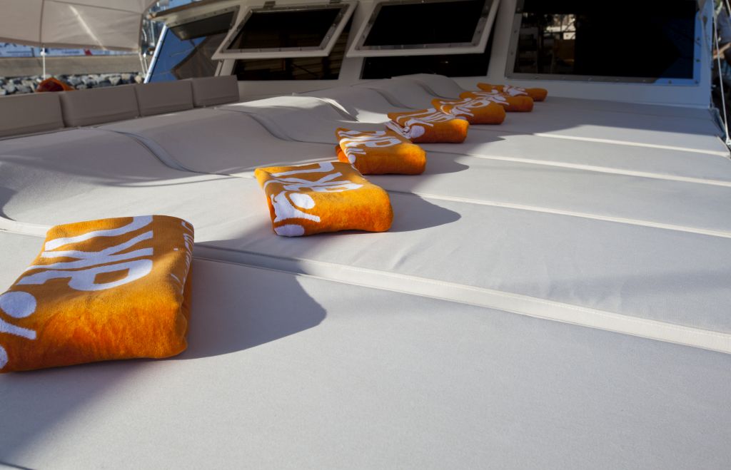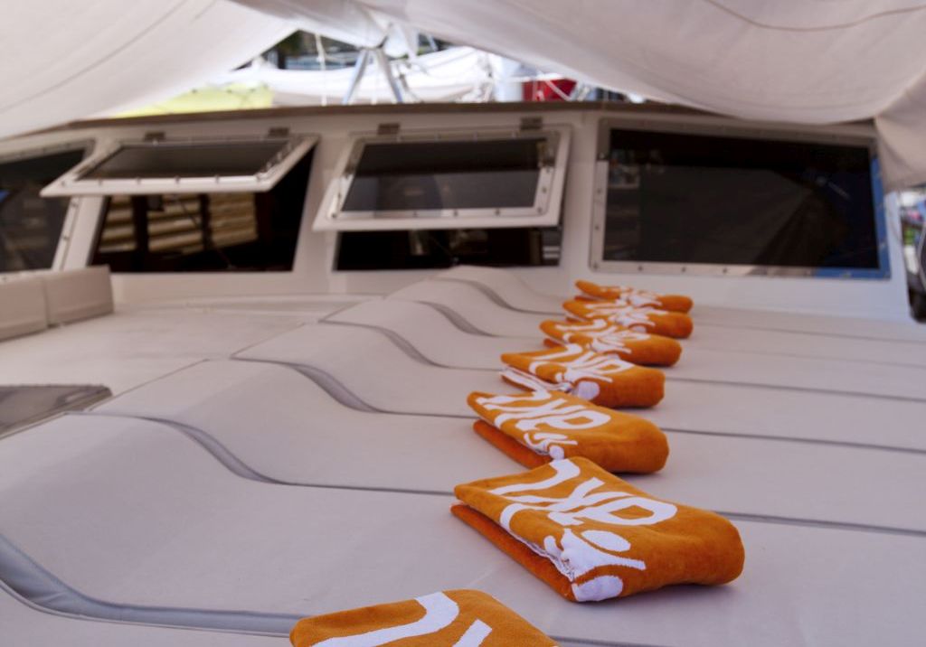Dıştan takma motoru, kano, Balık tutma ve Şnorkel Ekipmanları, yelken ekipmanları, Güverte alanı ile birlikte, navigasyon ekipmanları, Uydu, güvenlik ekipmanları, Güverte duşu, Güneşlenme minderleri, donanımlı mutfak, Kapalı yemek odası, Kabinlerde TV & DVD player, Minibar, iPod bağlantısı, Salonda müzik sistemi, Buz yapıcı, VHF telsiz, TV/DVD/CD Oynatıcı, GPS, İnternet bağlantısı