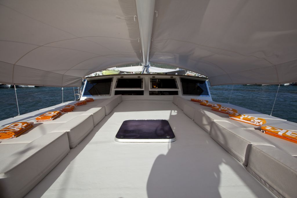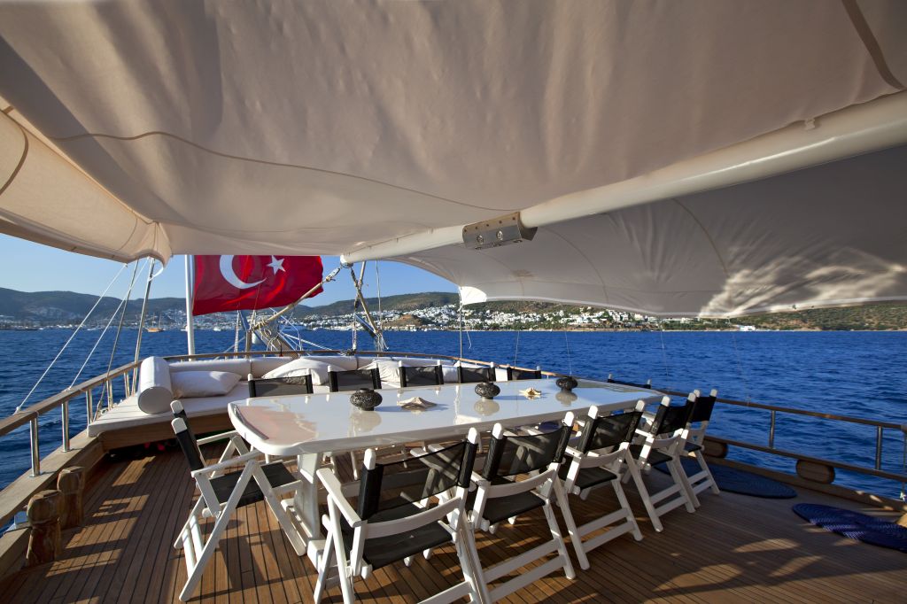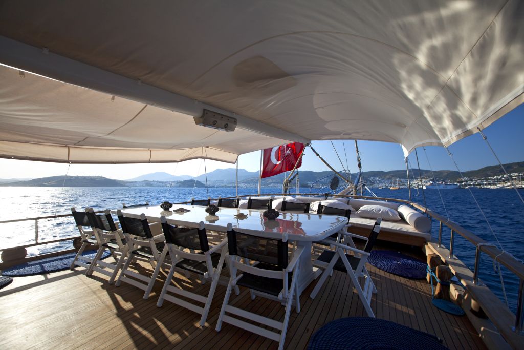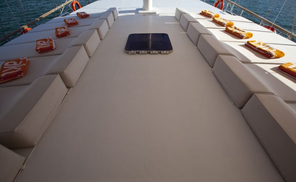 2019 yılında revize edilen 8 kabinli guletimiz, Bodrum, Göcek, Marmaris ve Fethiye çıkışlı mavi yolculuk turlarınızda 16 yolcu kapasitesiyle, ihtiyacınız olabilecek her detay düşünülerek donatılmıştır. Guletimizin Geniş ve konforlü yaşam alanlarında, 8 kabinde, 16 kişiye kadar olan kalabalık gruplarınızı ağırlayabilmekteyiz. Türk karasularında 16 kişiye hizmet verebilen teknemizde, her biri alanında deneyimli ve güler yüzlü 4 kişilik profosyonel mürettebatımızla % 100 misafir memnuniyeti odaklı servis veriyoruz.