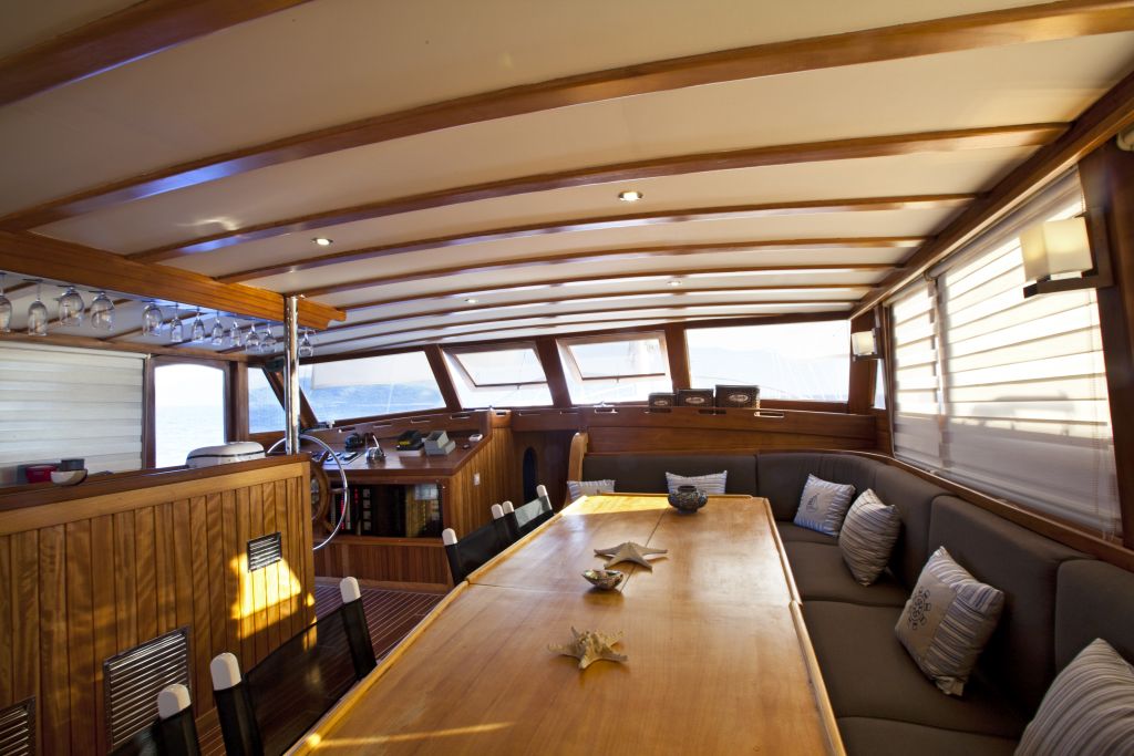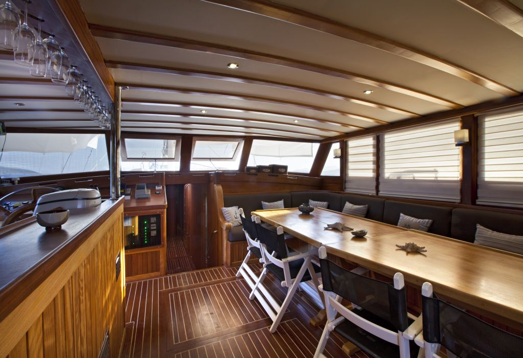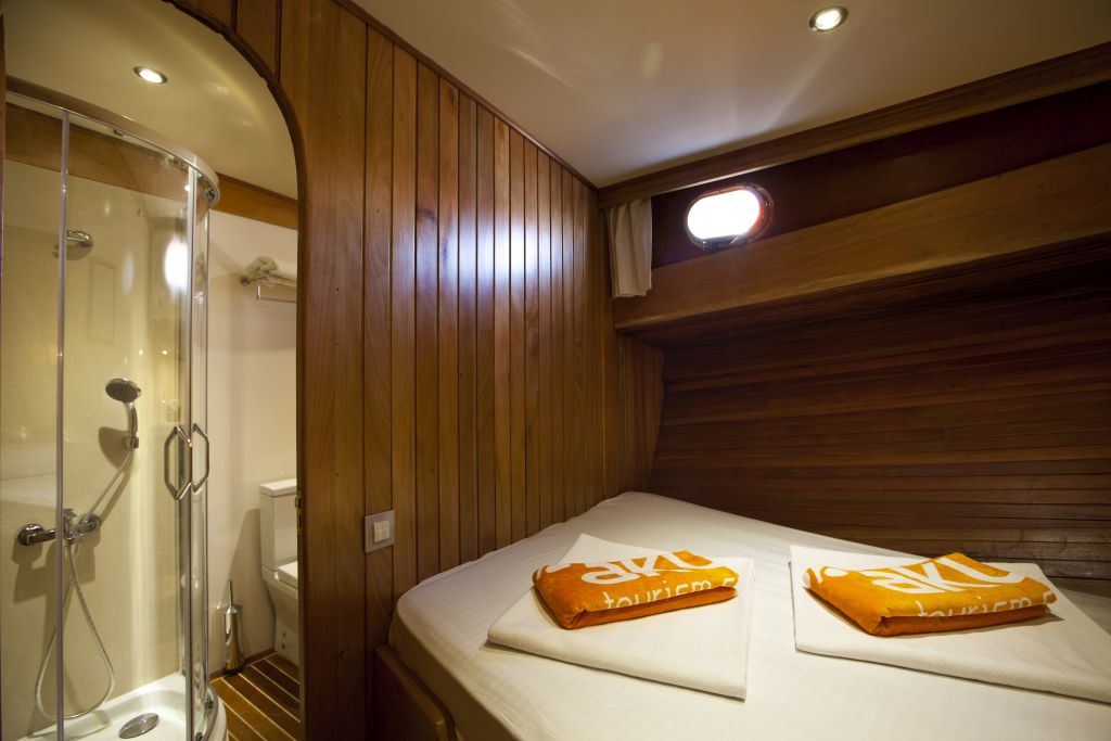 16 kişi kapasiteli; Toplam 8 Kabin; 4 Double Kabin, 4 Twin Kabin, klimalı, duş ve tuvaletli kamara. Kaptan ve mürettebat için ayrı kabinler.