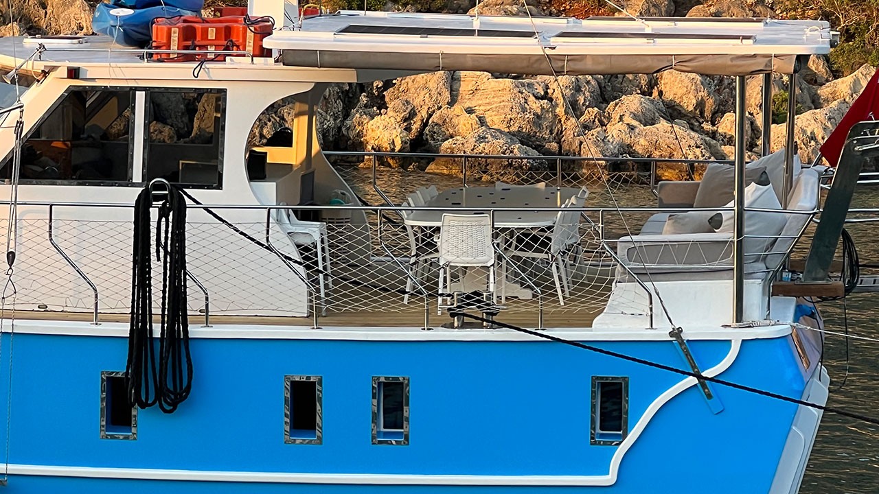 Simi Bodrum, Gökova, Marmaris, Göcek, Fethiye turlarımızda en çok tercih edilen küçük gruplar ve aileler için ideal 16 kişi kapasiteli 8 kabinli teknelerimizden biridir. Guletimiz Simi, özel tekne kiralamada misafirlerine Bodrum Göcek Fethiye Marmaris çıkışlı unutulmaz bir mavi tur tatili yaşatmak için özel olarak tasarlanmıştır. 26.00 mt Uzunluğundaki guletimiz 2006 yılında imal edilmiş, 2017 yılında yenilenmiştir. Bu 8 kabinli guletimizde evinizin bütün konforunu deniz üzerinde yaşayabilirsiniz. Simi guleti toplam 8 çift kişilik yataklı kabiniyle, toplamda 16 misafir için konaklama imkanı sunar. Guletimizin klimalı kabinlerinde konforlu duş ve wc imkanı vardır. guletimizin iç ve dış mekanlarında, salonda, güvertede ve mutfağında son derece kaliteli materyaller kullanılarak zevkle dekore edilmiştir. Simi Yatının mavi tur servisi konusunda deneyimli Kaptan ve aşçısı tekne tatiliniz boyunca konforunuz için sizin hizmetinizdedir. 4 kişilik ekibiniz servis, yemek, temizlik ve günlük faaliyetlerin organizasyonu için tatiliniz boyunca size eşlik edecektir. guletimiz ile yapmış olduğumuz kiralamalarda müşterilerimizden. Son yıllarda aldığımız Geri dönüş ve referanslar Simi yatımızda yüzde yüz müşteri memnuniyeti garantisi vermektedir.