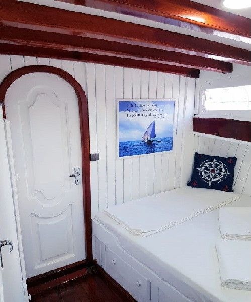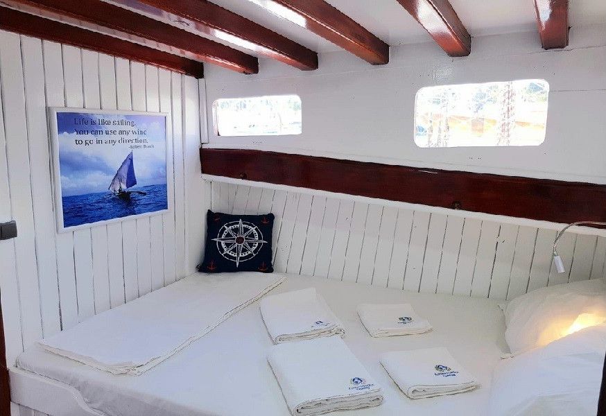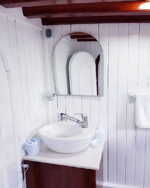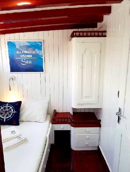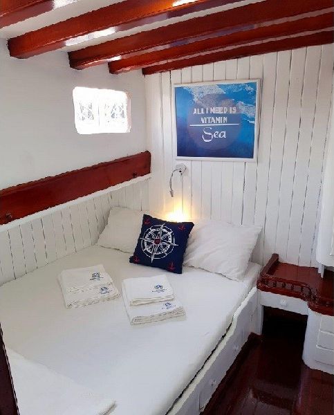 16 Kişiye Kadar Kapasite; 8 Çift Kişilik Kabin, tüm kabinlerde duş ve tuvalet, Ayrı mürettebat kabinleri..