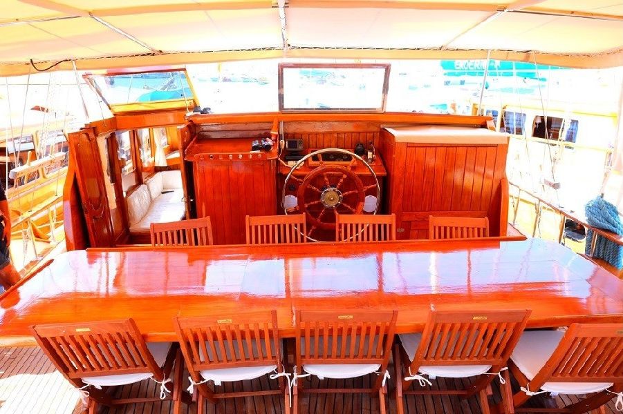 Techne Bodrum, Gökova, Marmaris, Göcek, Fethiye turlarımızda en çok tercih edilen küçük gruplar ve aileler için ideal 16 kişi kapasiteli 8 kabinli teknelerimizden biridir. Guletimiz Techne, özel tekne kiralamada misafirlerine Bodrum Göcek Fethiye Marmaris çıkışlı unutulmaz bir mavi tur tatili yaşatmak için özel olarak tasarlanmıştır. 24.00 mt Uzunluğundaki guletimiz 1996 yılında imal edilmiş, 2022 yılında yenilenmiştir. Bu 8 kabinli guletimizde evinizin bütün konforunu deniz üzerinde yaşayabilirsiniz. Techne guleti toplam 8 çift kişilik yataklı kabiniyle, toplamda 16 misafir için konaklama imkanı sunar. Guletimizin klimalı kabinlerinde konforlu duş ve wc imkanı vardır. guletimizin iç ve dış mekanlarında, salonda, güvertede ve mutfağında son derece kaliteli materyaller kullanılarak zevkle dekore edilmiştir. Techne Yatının mavi tur servisi konusunda deneyimli Kaptan ve aşçısı tekne tatiliniz boyunca konforunuz için sizin hizmetinizdedir. 3 kişilik ekibiniz servis, yemek, temizlik ve günlük faaliyetlerin organizasyonu için tatiliniz boyunca size eşlik edecektir. guletimiz ile yapmış olduğumuz kiralamalarda müşterilerimizden. Son yıllarda aldığımız Geri dönüş ve referanslar Techne yatımızda yüzde yüz müşteri memnuniyeti garantisi vermektedir.