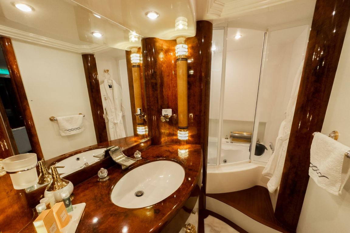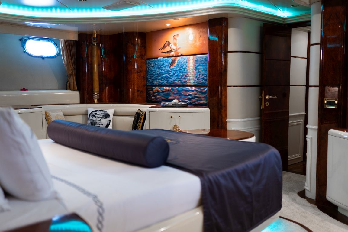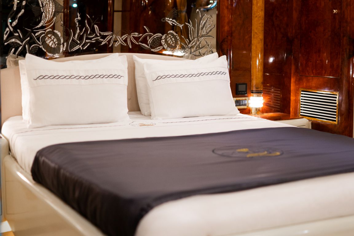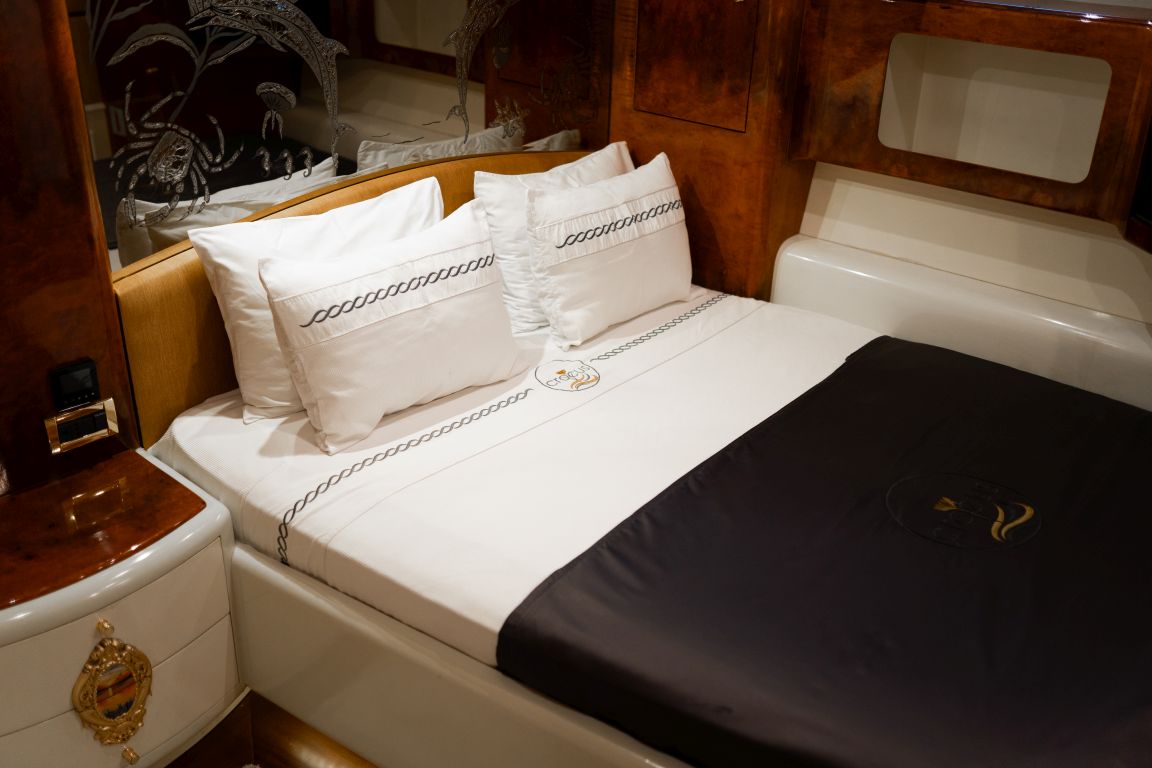 En fazla 12 misafir; 1 VIP, 1 Master, 3 Çift Kişilik, 1 İkiz Yataklı Kabin. Master Kabin: Alt güvertede bulunan geniş master kabinde king size yatak, Apple TV, internet erişimi ve Wi-Fi, çalışma/makyaj masası ve sinema ses sistemi bulunmaktadır. Kabinde ayrıca RGB ortam aydınlatması, klima, jakuzi, WC ve ayrı bir duş kabini de mevcuttur. VIP Kabin: VIP kabin ana güvertede yer almaktadır ve king size yatak, Apple TV, internet erişimi ve Wi-Fi, çalışma/makyaj masası ve sinema ses sistemi sunmaktadır. Misafirler RGB ortam aydınlatması, klima, jakuzi, WC ve özel duş kabininin keyfini çıkarabilirler. Çift Kişilik Kabinler (3): Alt güvertede üç adet konforlu çift kişilik kabin bulunmaktadır. Her kabinde queen size yatak, Apple TV, internet erişimi ve Wi-Fi, WC, duş kabini veya küvet ve klima bulunmaktadır. İkiz Kabin: Alt güvertede bulunan ikiz kabinde iki adet tek kişilik yatak, Apple TV, internet erişimi ve Wi-Fi, tuvalet, duş kabini ve klima bulunmaktadır. |