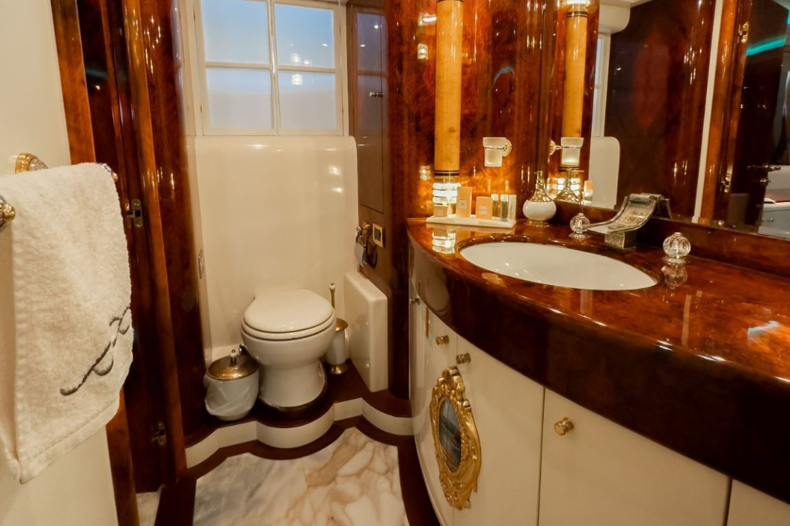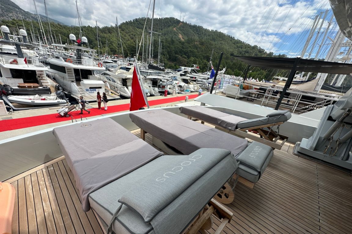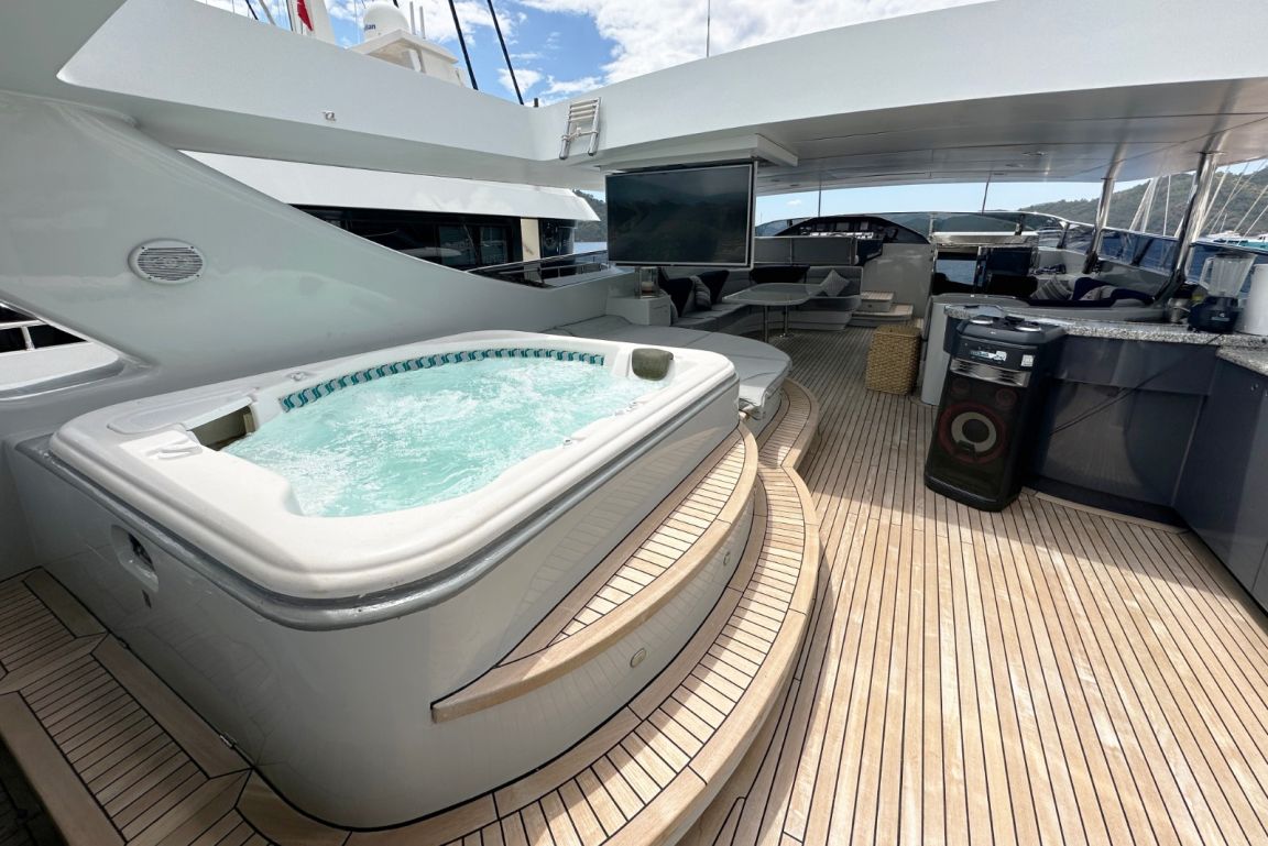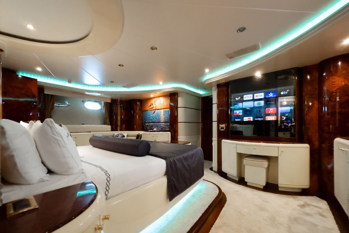 | TEKNE İÇİ ALANLAR; Salon (Ana Güverte), Zarif ana salonda koltuk altı soğutma sistemli konforlu deri kanepeler, yemek masası, klima ve RGB ortam aydınlatması bulunmaktadır. Eğlence seçenekleri arasında televizyon, Apple TV, internet erişimi, sinema ses sistemi ve iki adet 360 derece dönebilen TV yer almaktadır. Salon ayrıca maksimum konfor ve mahremiyet için otomatik perde sistemine sahiptir. Flybridge; Geniş flybridge, büyük bir güneşlenme alanı, barbekü alanı, televizyon, Apple TV, internet erişimi ve Wi-Fi sunmaktadır. Konuklar, gemi içi ses sistemi aracılığıyla müzik dinlerken ve akşamları RGB ortam aydınlatmasının keyfini çıkarırken açık deniz manzarasının tadını çıkarabilirler. TENDERLER VE SU OYUNCAKLARI; Tender: Zodiac Medline 6.00 - 115 HP, Su Kayağı, Wakeboard, Ringo (Çekilebilir Tüp), Paddleboard, Balıkçılık Ekipmanları, Kanolar, Banana Boat |
