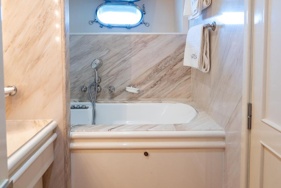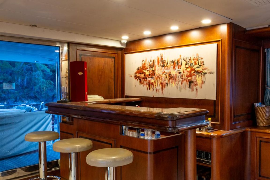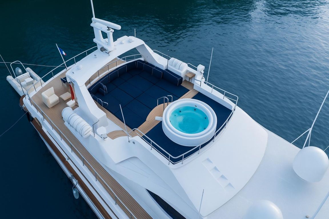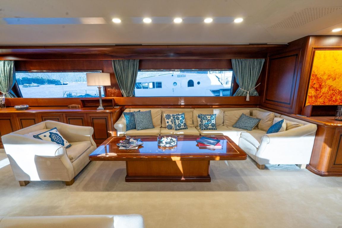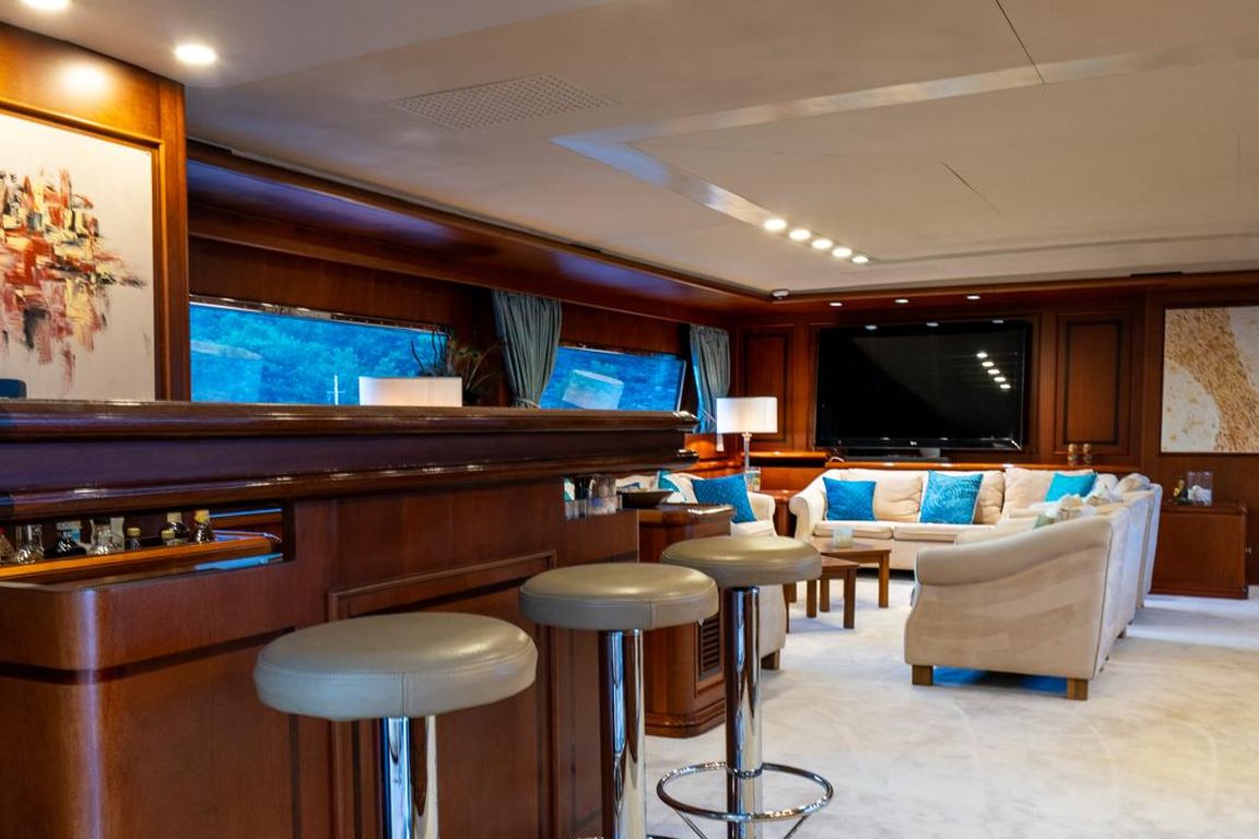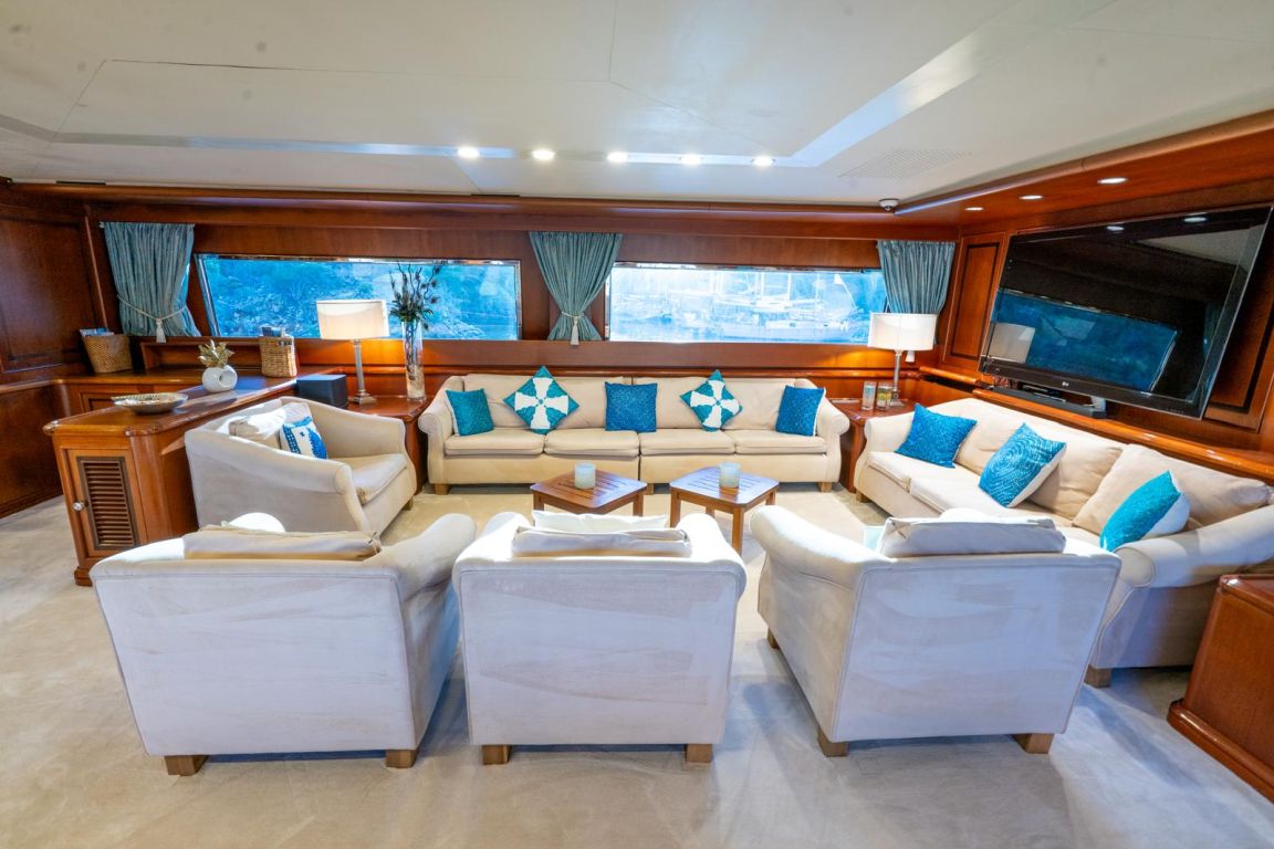 | GEMİ İÇİ ALANLAR; Salon (Ana Güverte); Şık ana salon, konforlu oturma alanları, bar, televizyon, Apple TV ve internet erişimi sunmaktadır. Eğlence seçenekleri arasında sinema ses sistemi, 3D sinema sistemi ve oyun konsolları bulunmaktadır. Salonda ayrıca klima ve dahili telefon sistemi de mevcuttur. Gökyüzü Salonu (Üst Güverte); Üst güverte gökyüzü salonu, yemek masası, ses sistemi, internet erişimi ve Wi-Fi, klima ve dahili telefon içeren konforlu bir oturma alanı sunmaktadır. Panoramik deniz manzarasının keyfini çıkarırken rahatlamak için mükemmel bir yerdir. Güneşlenme Güvertesi; Geniş güneşlenme güvertesi, büyük güneşlenme alanları, jakuzi ve havlu dolapları içermektedir. Konuklar, Akdeniz boyunca seyahat ederken muhteşem manzaraların ve rahatlatıcı anların tadını çıkarabilirler. TEKNELER VE SU OYUNCAKLARI; Botlar: Zodiac N-ZO 6.80 - 250 HP, Zodiac Medline 5.80 - 115 HP, Zodiac Yachtline 3.60 - 25 HP. Su Oyuncakları: Sea-Doo Jet Ski - 230 HP, ARGO Amfibik Araç, Hobie Cat Katamaran, Su Kayağı, Wakeboard, Ringo (Çekilebilir Tüp), Rüzgar Sörfü, Kürek Sörfü, Uçurtma Sörfü, Şişme Yüzme Platformu - 150 m2, Dalış Ekipmanları, Balıkçılık Ekipmanları |