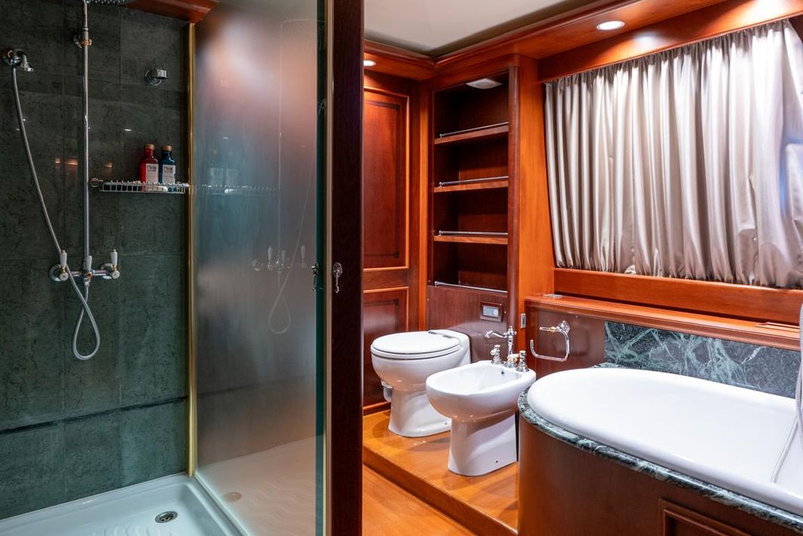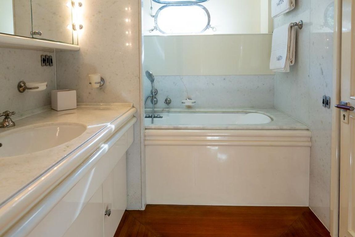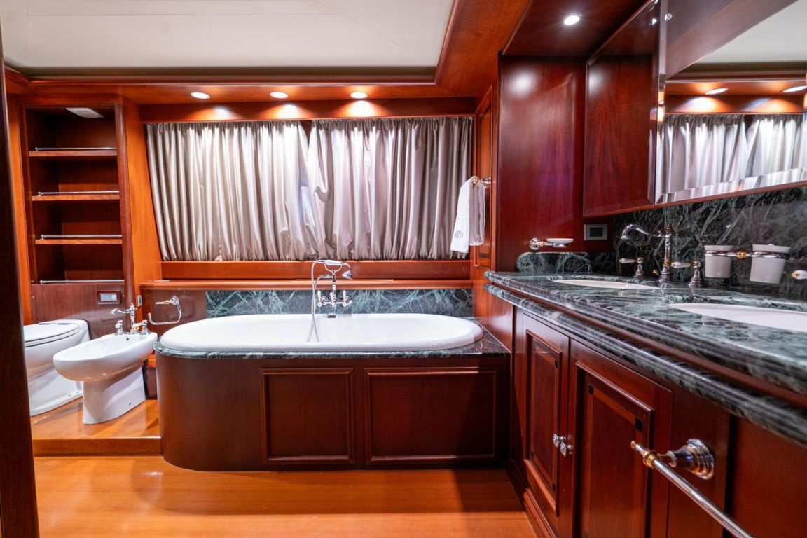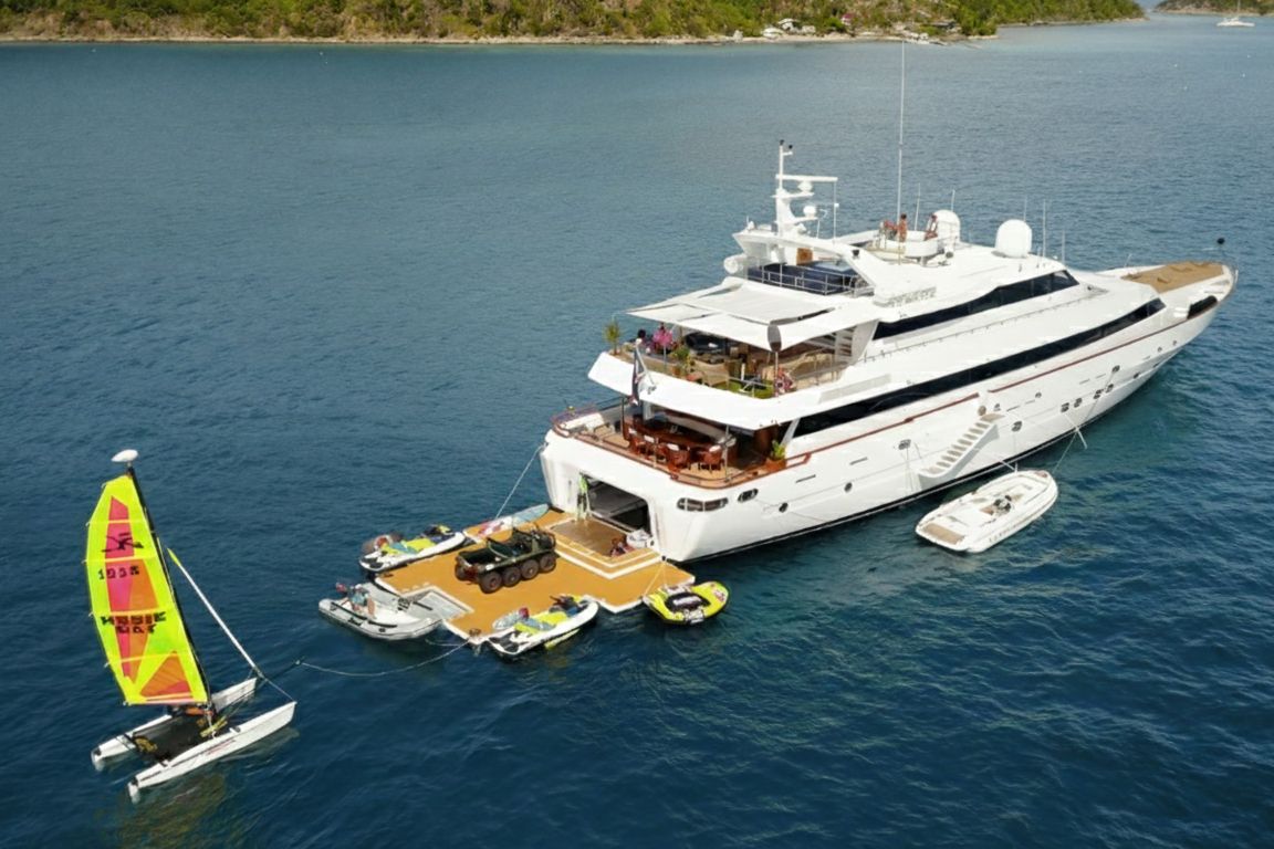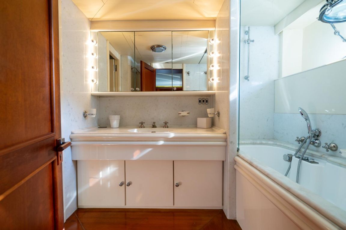 | GEMİ İÇİ ALANLAR; Salon (Ana Güverte); Şık ana salon, konforlu oturma alanları, bar, televizyon, Apple TV ve internet erişimi sunmaktadır. Eğlence seçenekleri arasında sinema ses sistemi, 3D sinema sistemi ve oyun konsolları bulunmaktadır. Salonda ayrıca klima ve dahili telefon sistemi de mevcuttur. Gökyüzü Salonu (Üst Güverte); Üst güverte gökyüzü salonu, yemek masası, ses sistemi, internet erişimi ve Wi-Fi, klima ve dahili telefon içeren konforlu bir oturma alanı sunmaktadır. Panoramik deniz manzarasının keyfini çıkarırken rahatlamak için mükemmel bir yerdir. Güneşlenme Güvertesi; Geniş güneşlenme güvertesi, büyük güneşlenme alanları, jakuzi ve havlu dolapları içermektedir. Konuklar, Akdeniz boyunca seyahat ederken muhteşem manzaraların ve rahatlatıcı anların tadını çıkarabilirler. TEKNELER VE SU OYUNCAKLARI; Botlar: Zodiac N-ZO 6.80 - 250 HP, Zodiac Medline 5.80 - 115 HP, Zodiac Yachtline 3.60 - 25 HP. Su Oyuncakları: Sea-Doo Jet Ski - 230 HP, ARGO Amfibik Araç, Hobie Cat Katamaran, Su Kayağı, Wakeboard, Ringo (Çekilebilir Tüp), Rüzgar Sörfü, Kürek Sörfü, Uçurtma Sörfü, Şişme Yüzme Platformu - 150 m2, Dalış Ekipmanları, Balıkçılık Ekipmanları |
