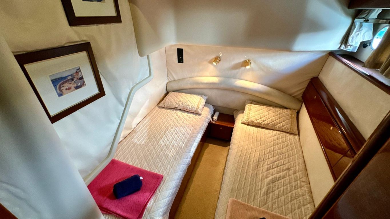| En fazla 4 misafir; 3 kabin. Tüm kabinlerde banyo, tuvalet, klima mevcuttur. Mürettebat için ayrı kabinler bulunmaktadır. |